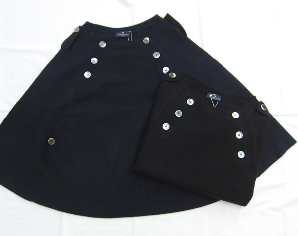 今年大人気のポンチョのニットバージョンです。脇の下で釦を留めれば袖にもなり、すぽっと被るだけで、今年の顔に。ボリュームのあるトップスには、ショートパンツがおすすめです。