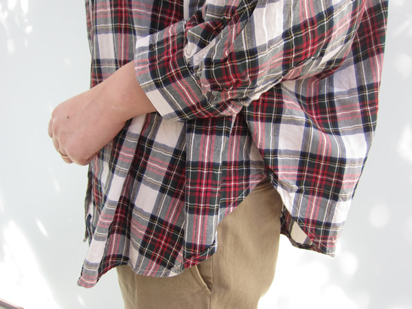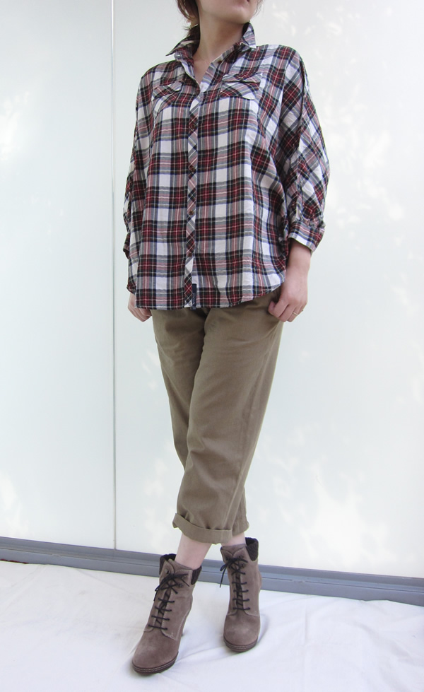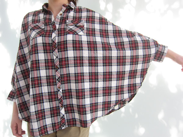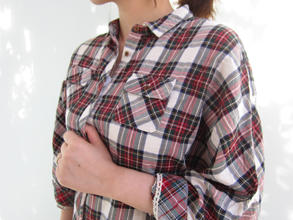 一見すると、ゆったりしたサイズ感のチェックシャツですが、手を広げてみるとそのデザインに一目惚れです。