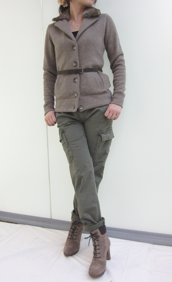 ・ニット ¥19,950 「HEMISPHERES」 ・パンツ ¥15,750 「HARRISS」 ・ブーツ ¥47,250 「LAMUN」