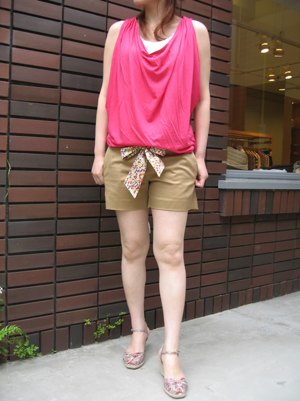 ・ショートパンツ ¥14,490 「heliopole」 ・サンダル ¥14,700 「HARRISS」