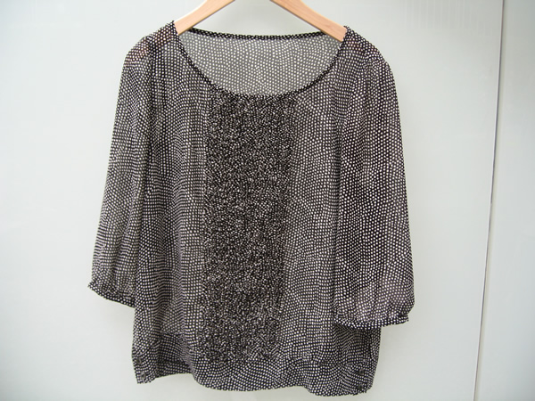 黒がとてもシックな透け感のある半袖ブラウスです。