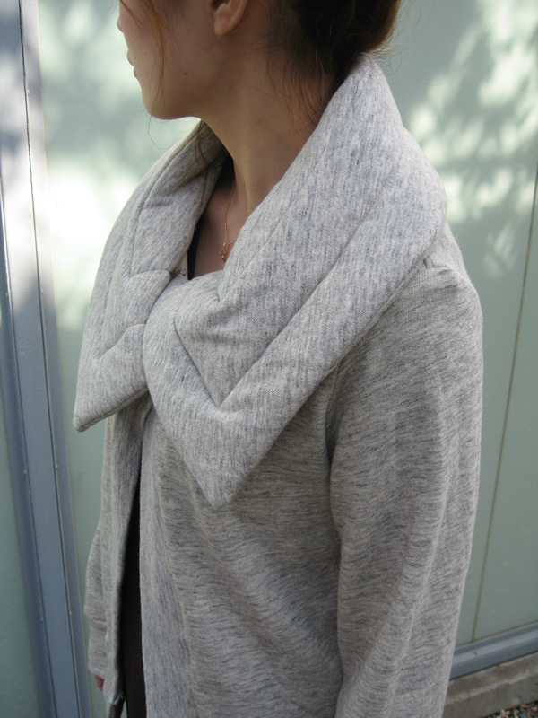 大きな襟がポイントのコットンカーディガン。ゆったりめのデザインで袖にもゆとりがありますので、重ね着も十分にしていただけます。肉厚な襟元が立体感を生むので、小顔効果も。杢調の色味にも雰囲気がありますよね。