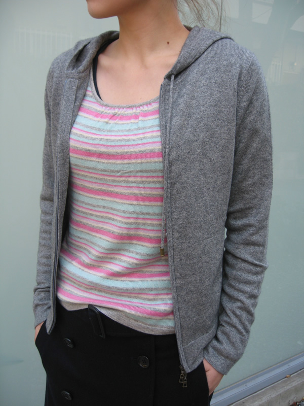 ・パーカー ¥18900 (シルク×カシミヤ) カラー: グレー パープル