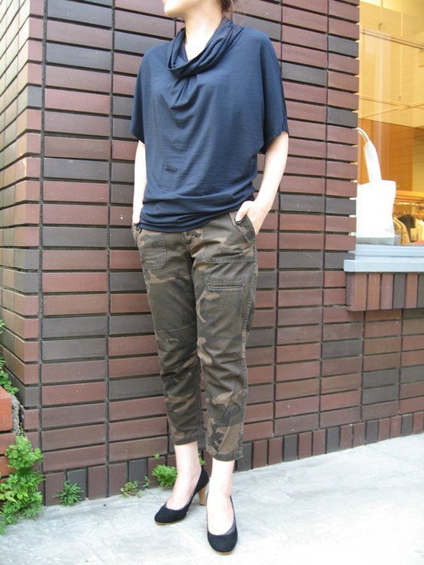 今回は、迷彩柄のパンツを穿いて、きれいかっこいいスタイルとカジュアルスタイルを提案します。