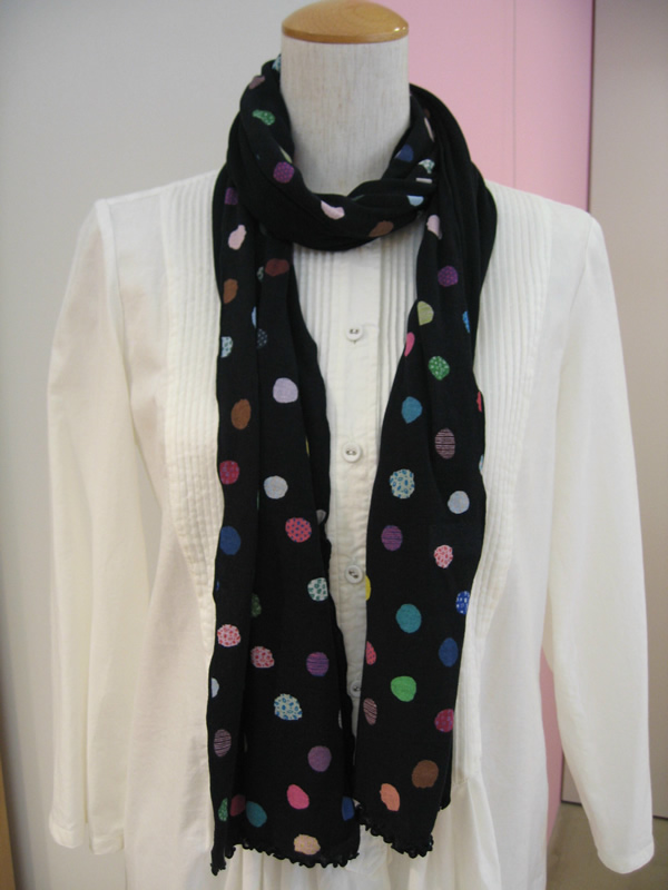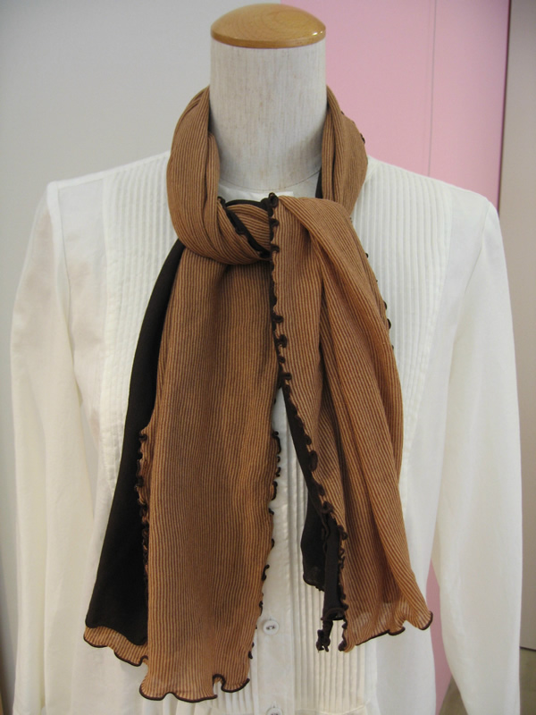 続いては、同じシフォン素材を使用したストール。サイズが2種類あり、どちらも2枚重ね(柄と、柄の同系色の無地の組み合わせ)になっています。忘れてしまいがちですが、首元っていつのまにか日焼けしていることが多いですよね。ぜひストールを巻いて日焼け対策を。