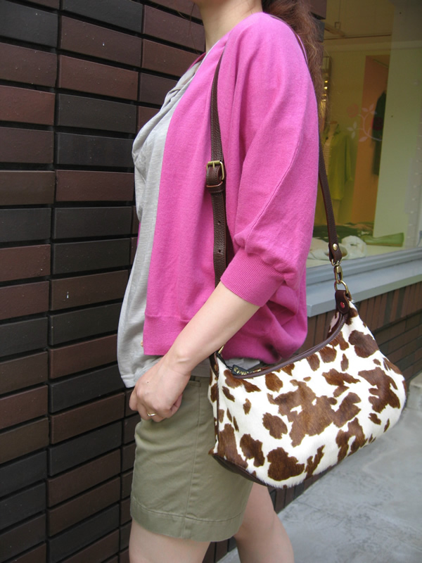 まずアニマル柄に目がいきますよね。今年、大注目のアニマル柄はバッグでも登場です。タウンユースには使いやすいサイズ感で、コーディネートのアクセントとしては申し分ないくらい、おしゃれ度がアップします。決め過ぎずにデニムなどラフに合わせるのがおすすめ。ポニーの革ですので、ツヤ感もあり上品。持ち手が変えられますのでワンショルダーや、斜め掛けにすることもできます。