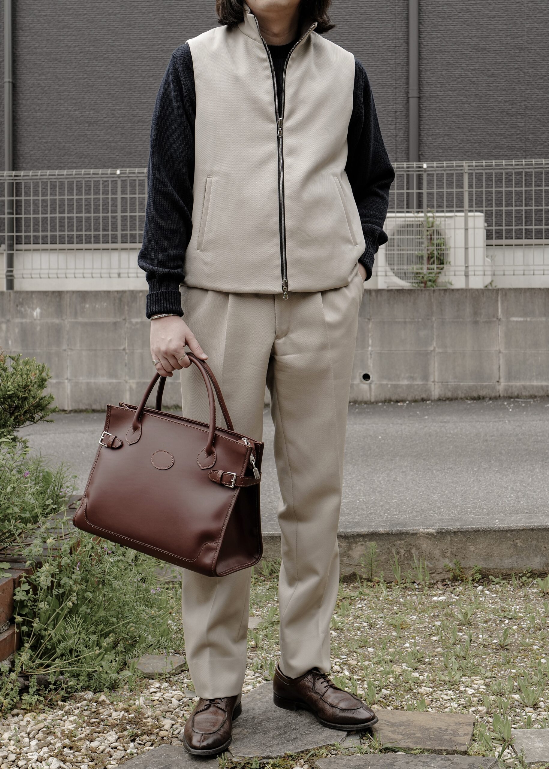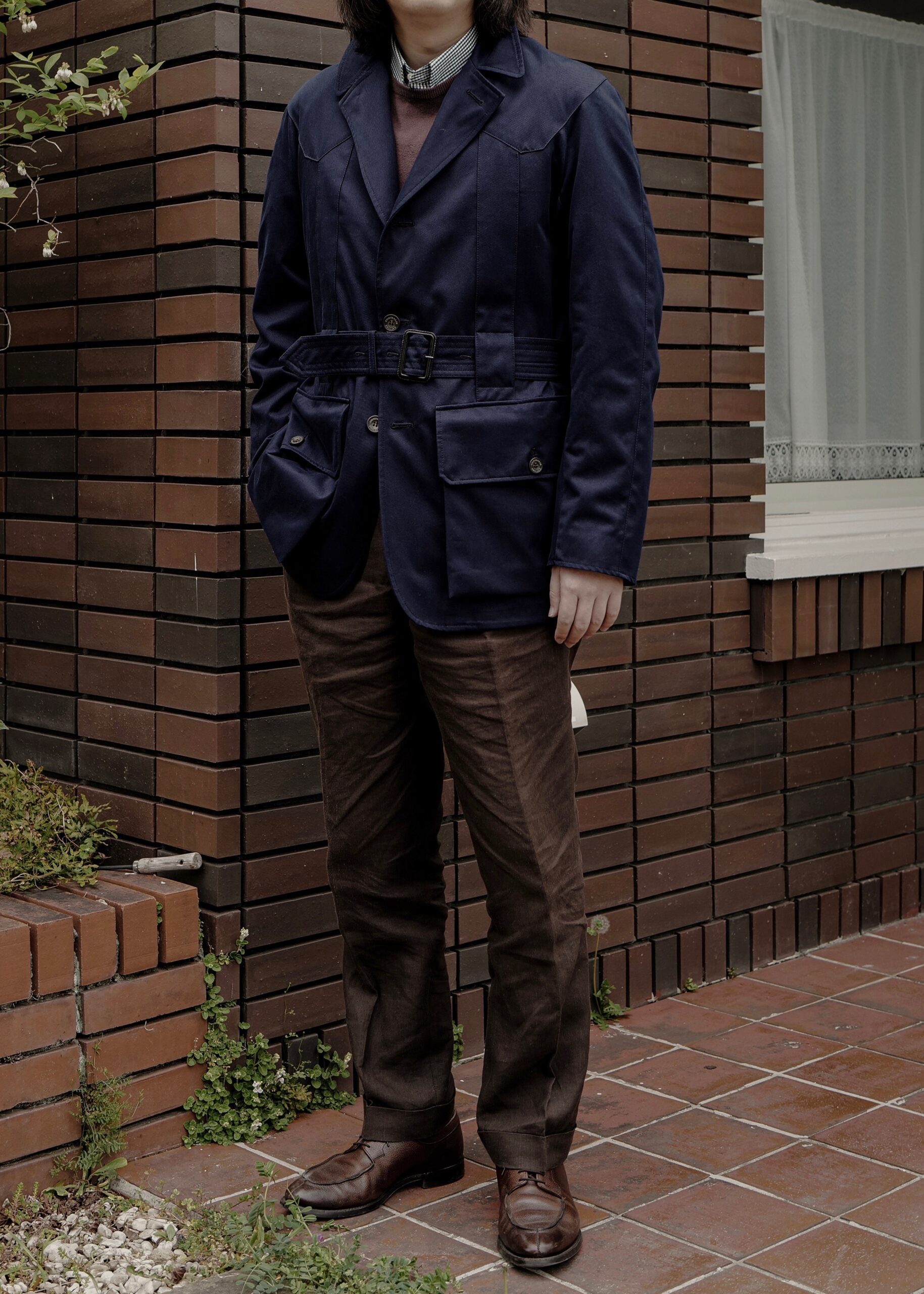 実際のところ夏は着用出来ませんが、気温差の激しい時期はハーフコート代わりになり、秋冬はツイードジャケットに合わせ英国カントリースタイルを堪能して頂ければと思います。