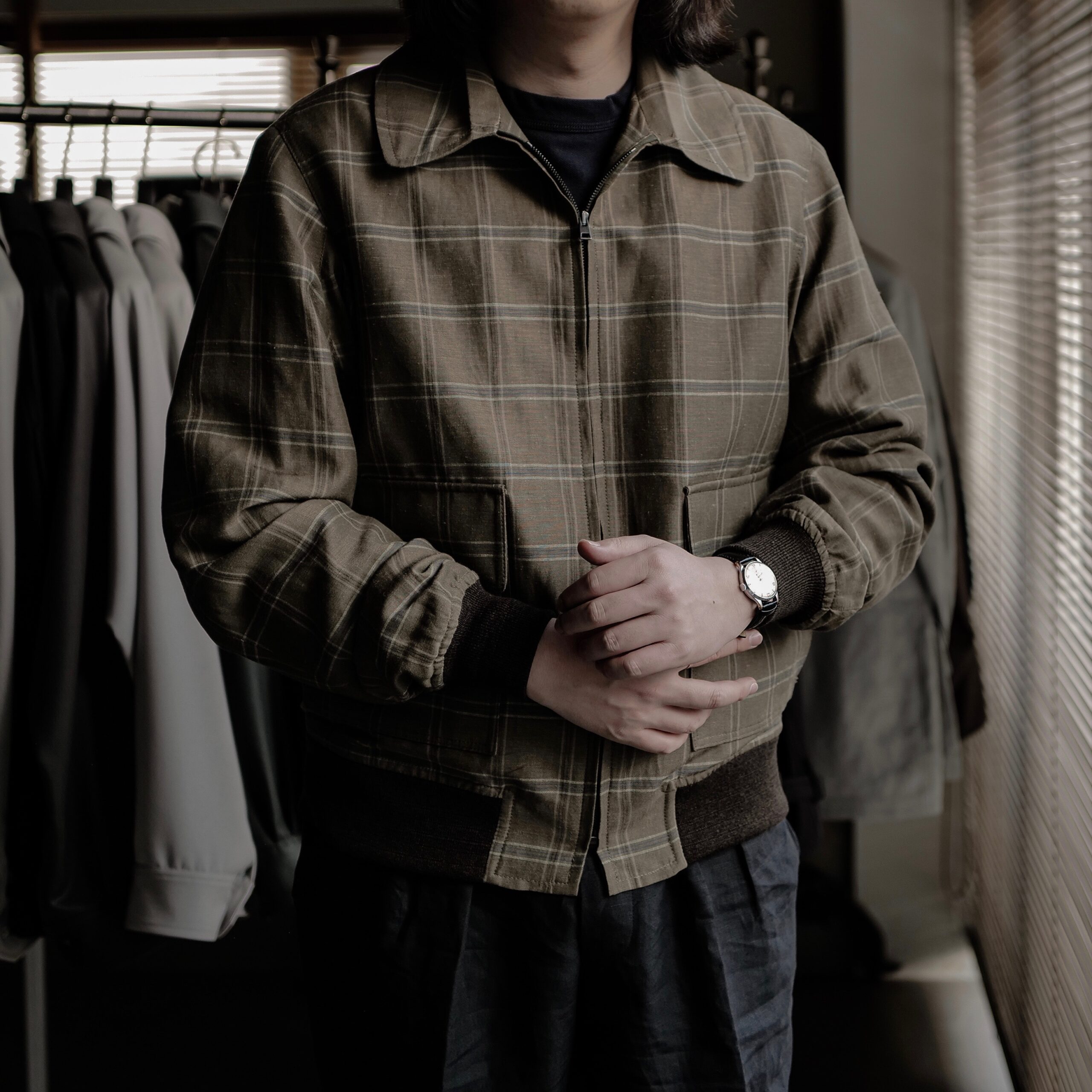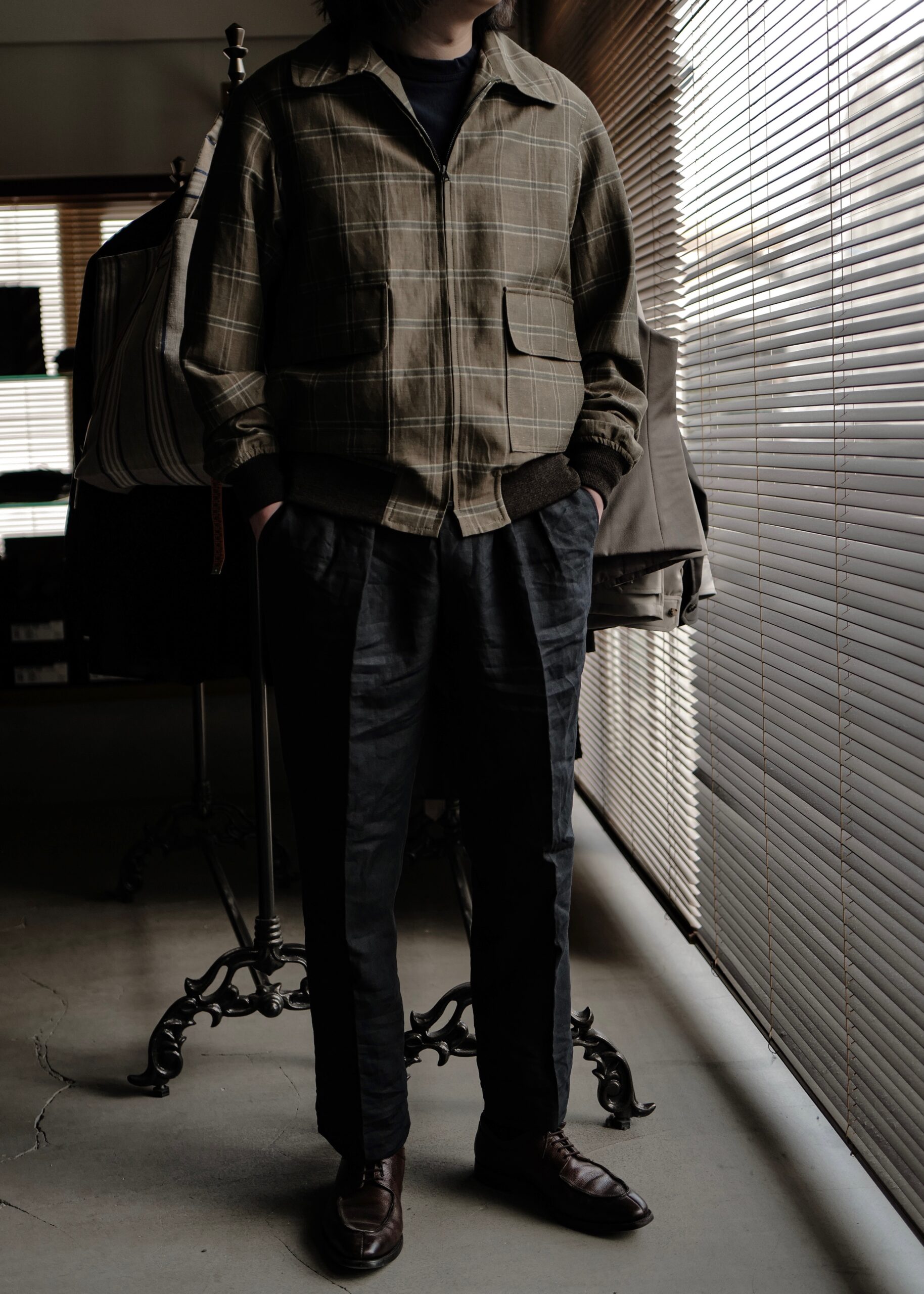 MODEL:「FLIGHT JACKET」ウールリネンウインドウペン柄フライトジャケット