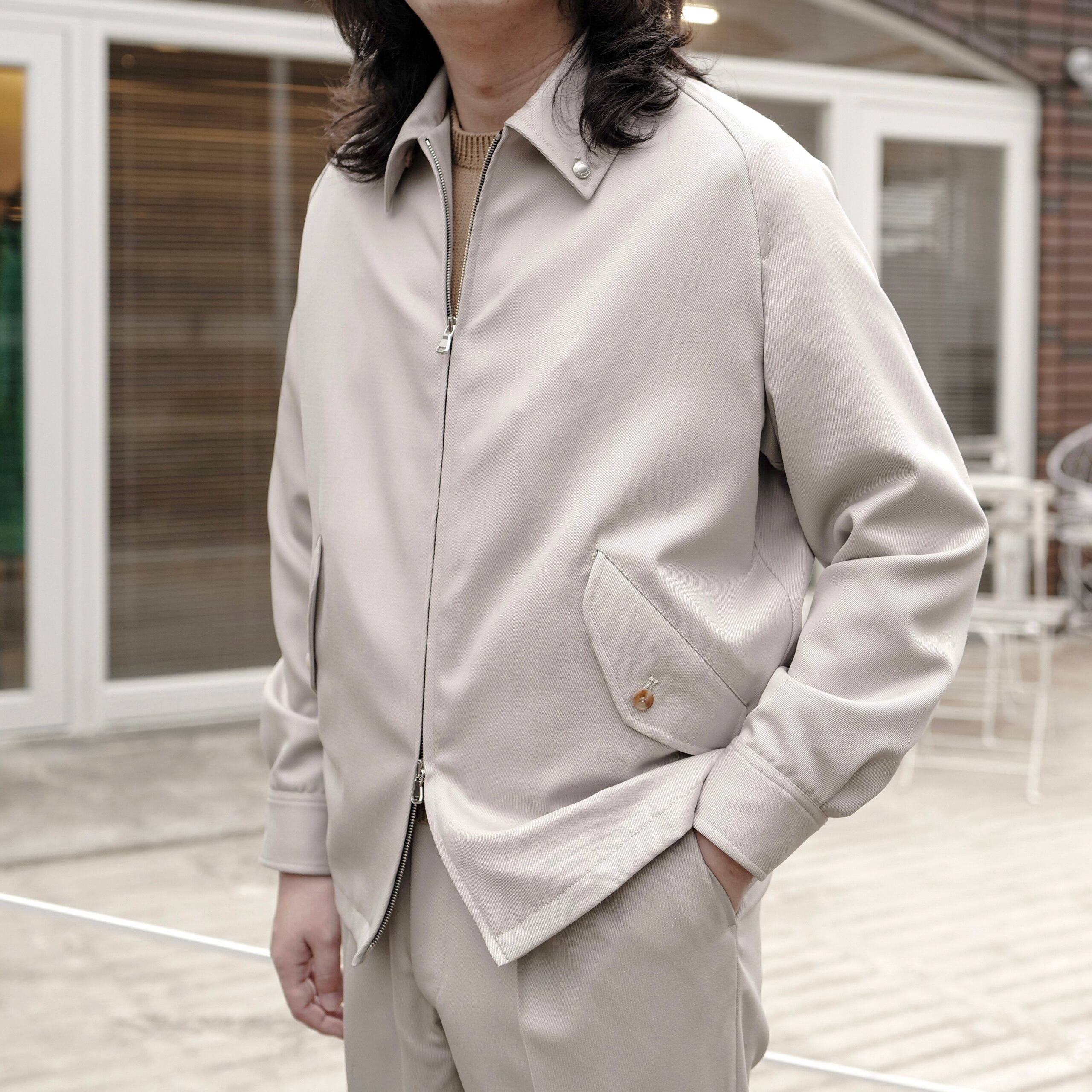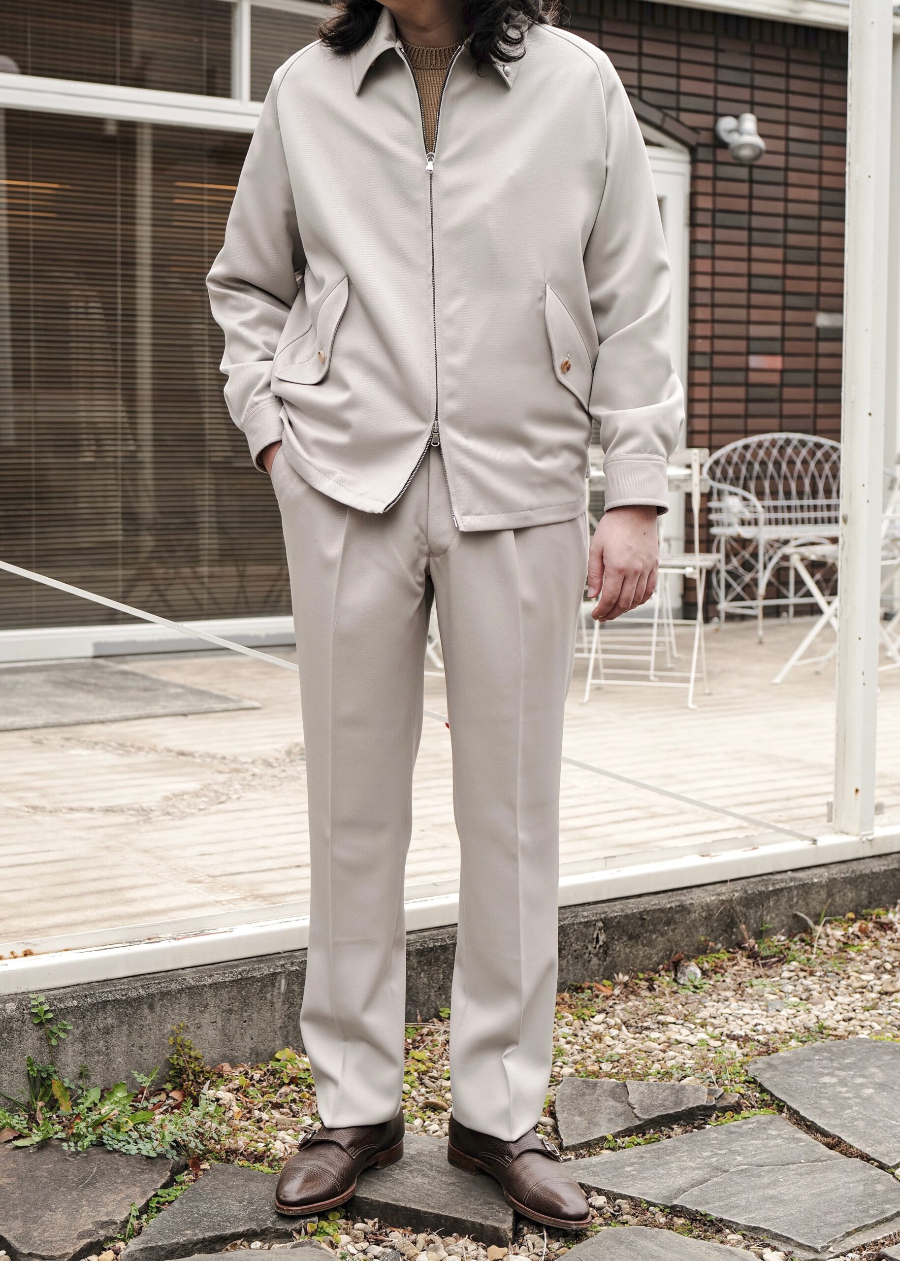 軽快にキャバリーツイルを嗜むことの出来るモデルで、着こなしの懐も深く羽織るだけで絵になってしまうような素晴らしい洋服です。