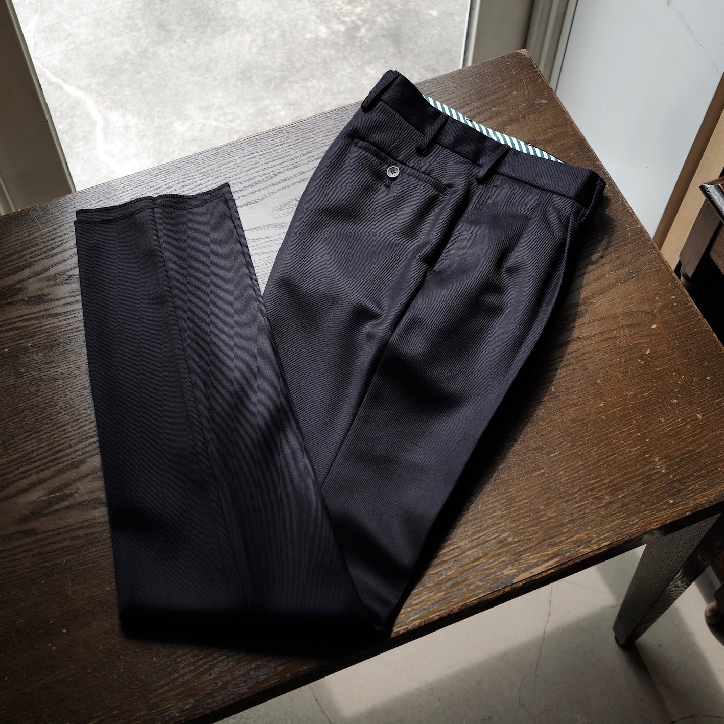 すでに1本だけ購入させて頂いたのですが、今まで履いてきたトラウザーズの中で生地の良さとシルエットの相性が群を抜いています。