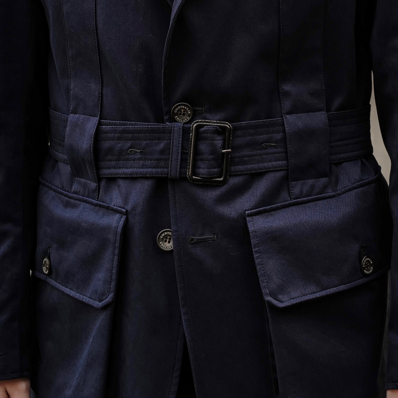 ボタンはクリサリスネーム入りの特注水牛ボタン。