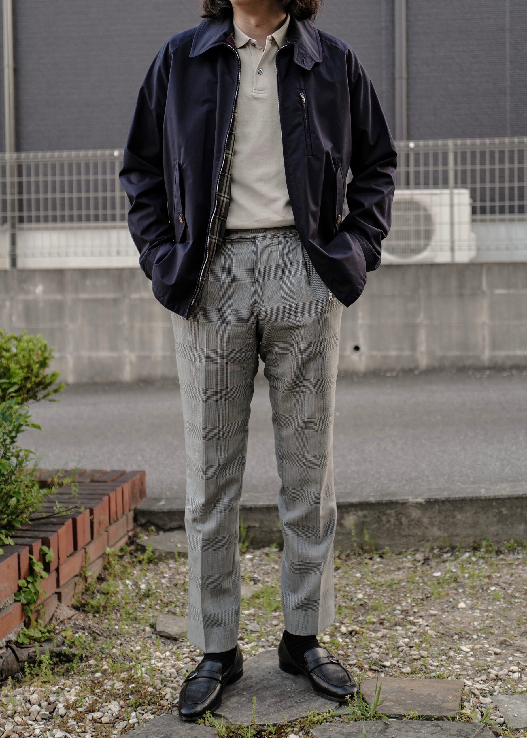 より上品さを求める旅慣れた方にはカシェート別注のグレンプレイドハンティングジャケットを推します。