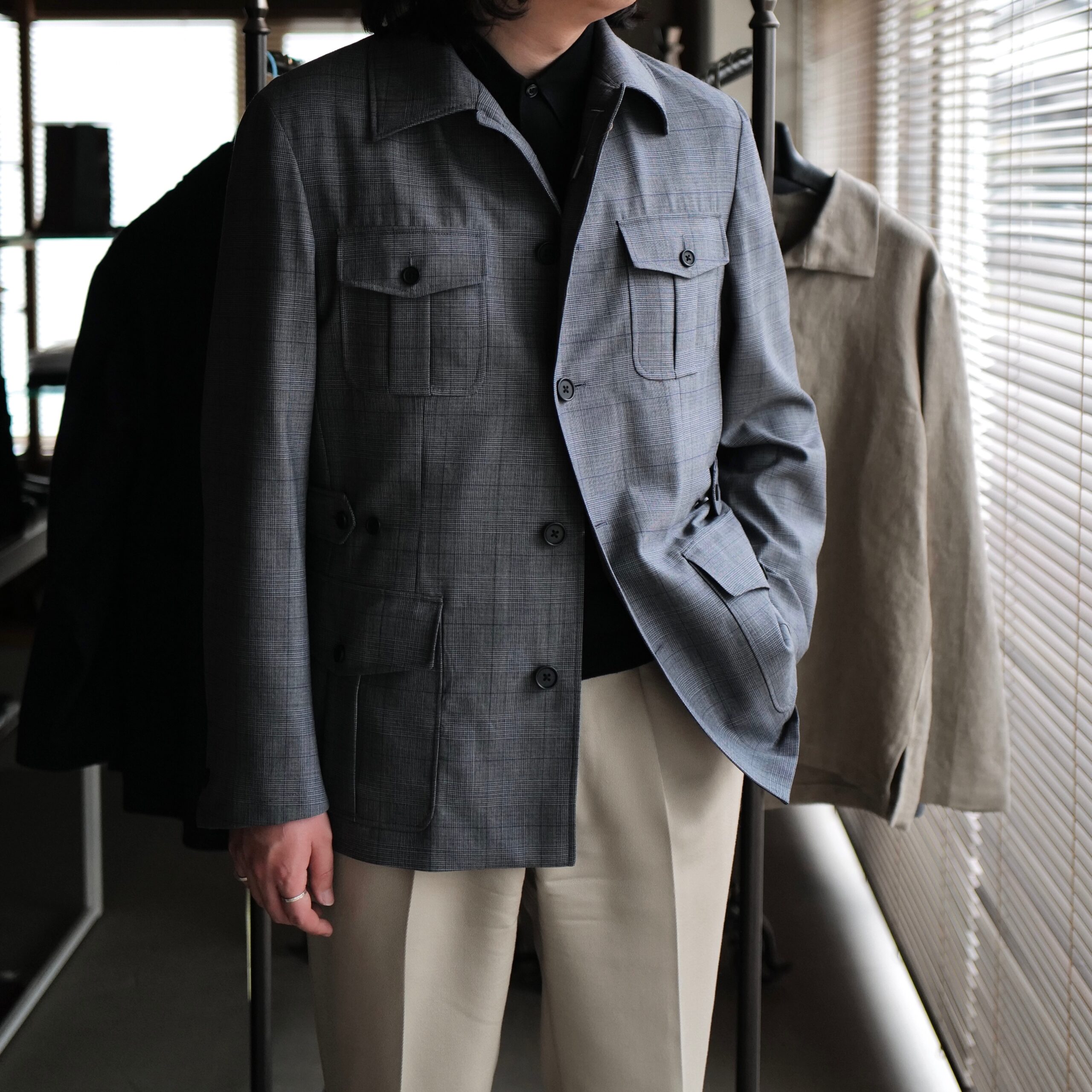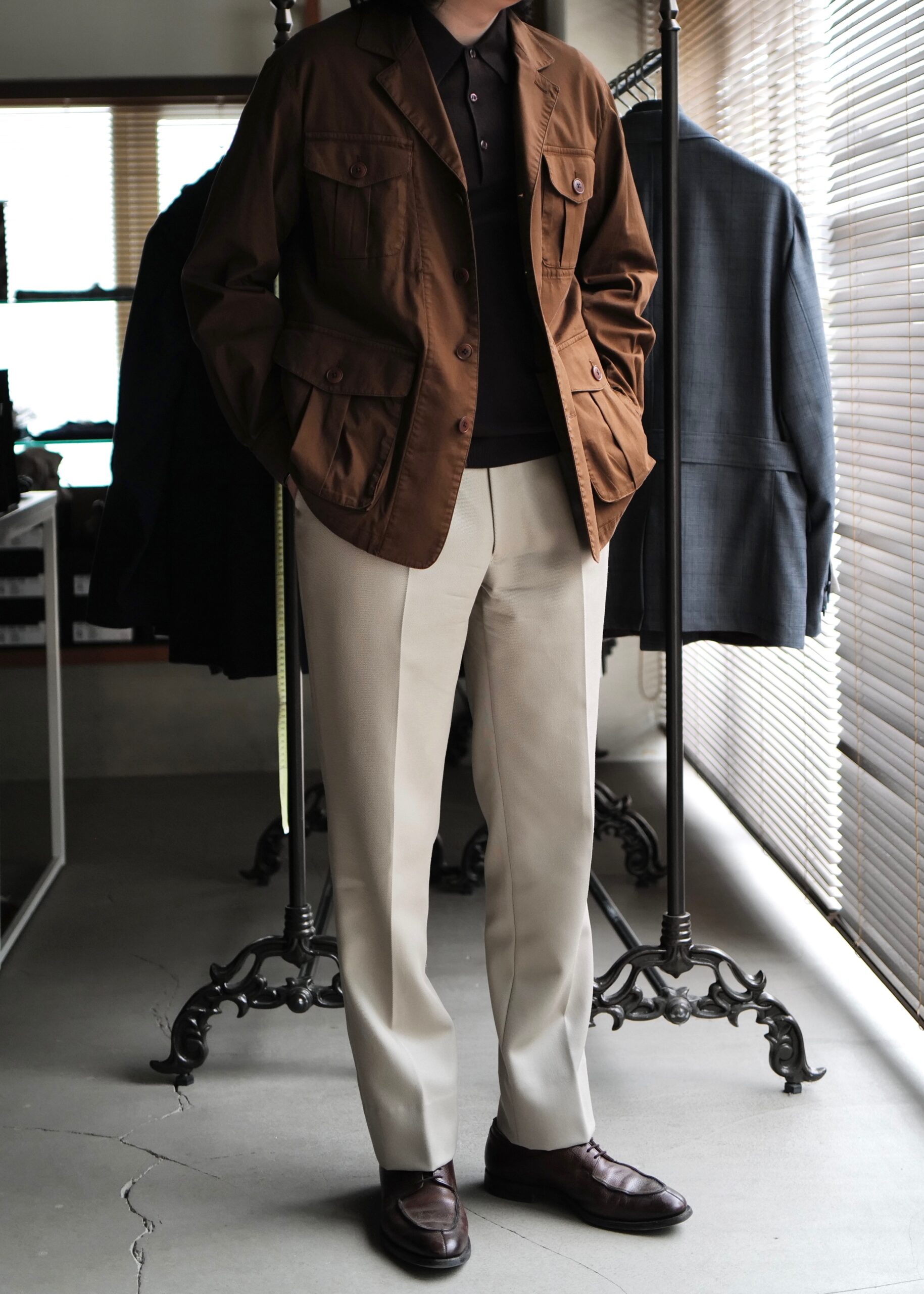 ご用意したのは、前回の継続モデル「SAFARI」に今季新しく登場した生地から選んだサファリジャケット。