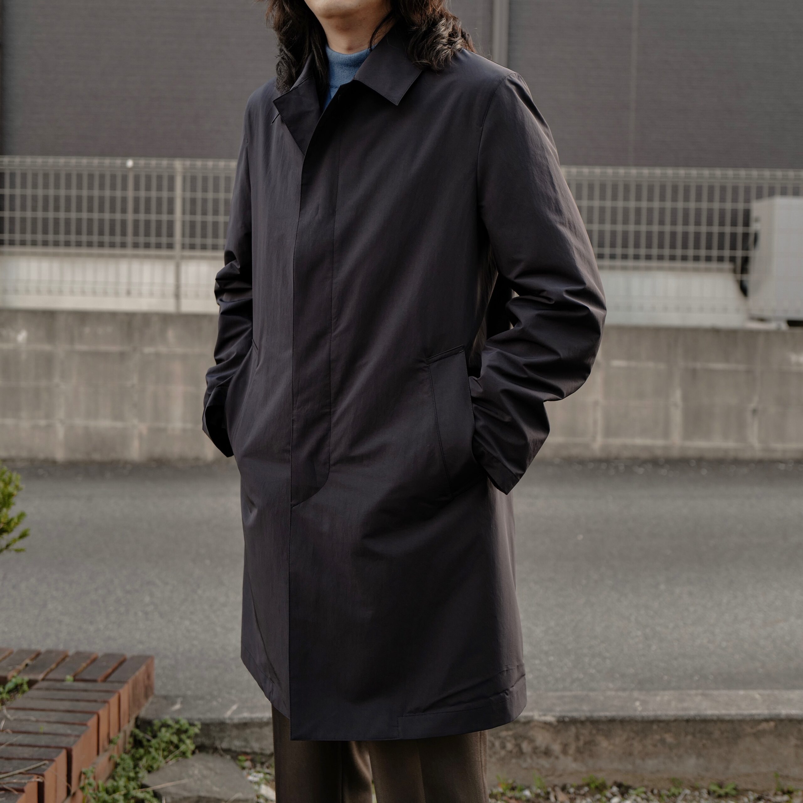 ブランドの原点であるレインコートを現代的に仕上げ、シャカシャカのハイテク生地ならではの良さと、真面目なカッティングによる洗練されたパターンはドレススタイルに深く馴染みそうです。