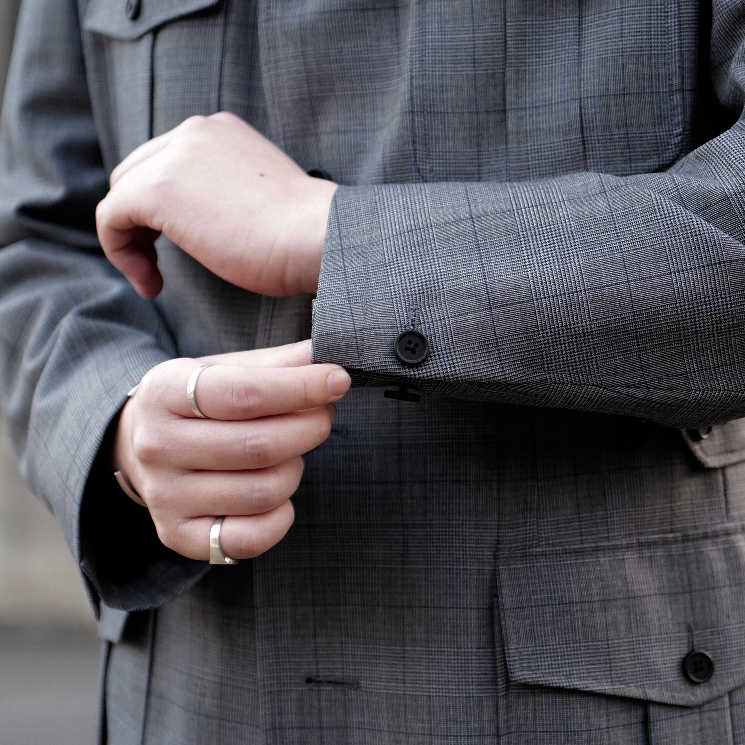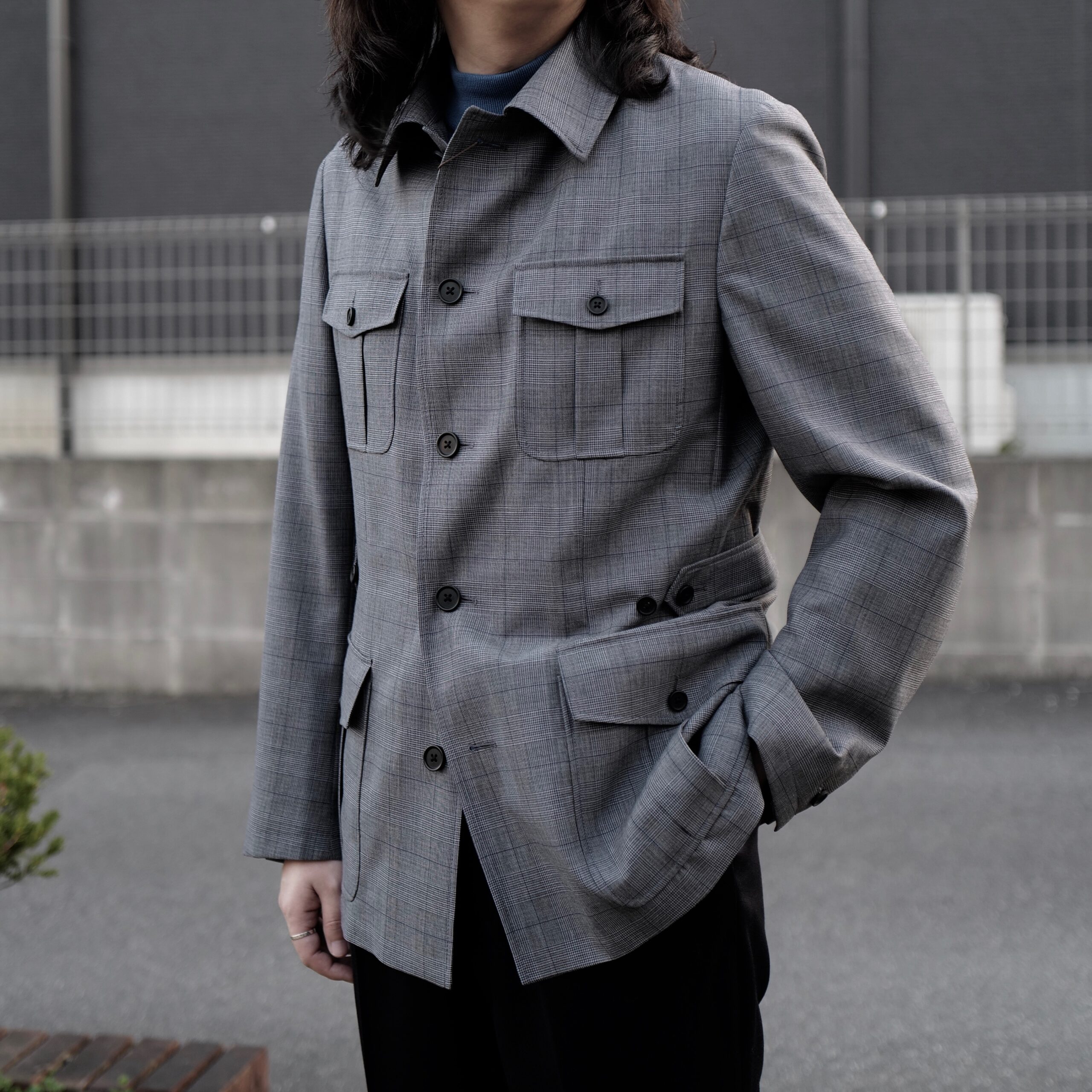 MODEL:カシェート別注グレンチェック柄サマーウールハンティングジャケット