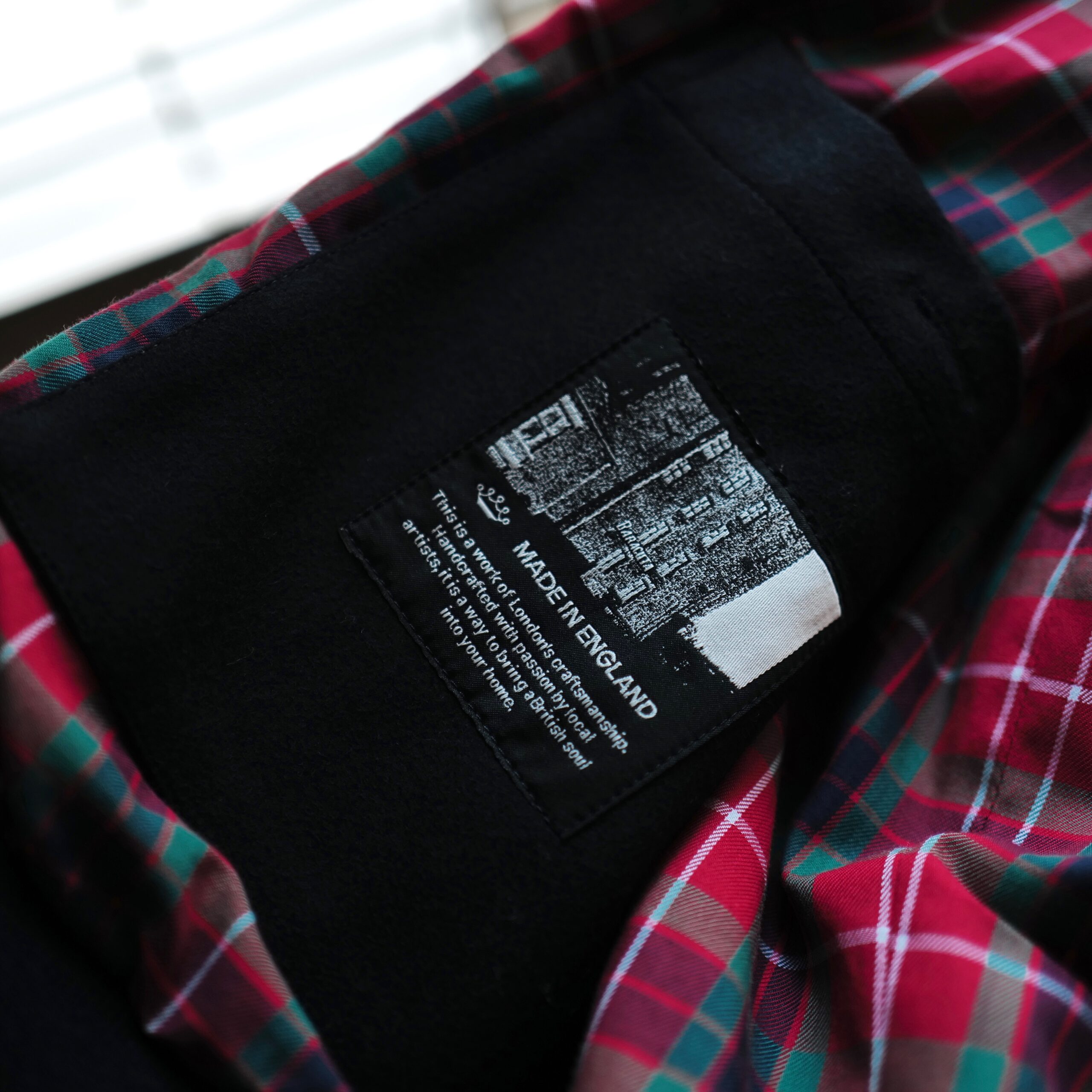 裏地のポケットにはMade in Englandの文字とファクトリーの写真付きの特別なデザインとなっていました。