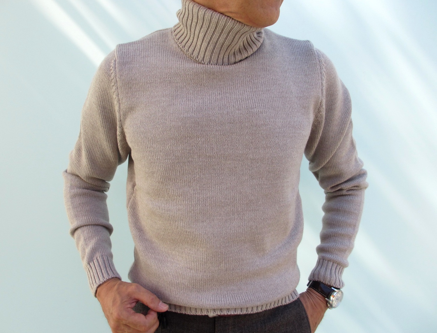 「KYOTO」と同じミドルゲージのタートルネック。木枯らしが吹く頃が出番でしょうか。寒がりな私にとっては、欠かせないアイテムの一つです。