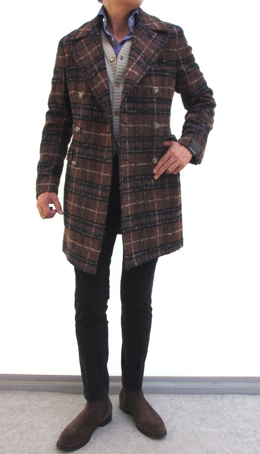 このコートです。LEON 10月号のP164に掲載された【TAGLIATORE/タリアトーレ】らしいダブルブレストコート。