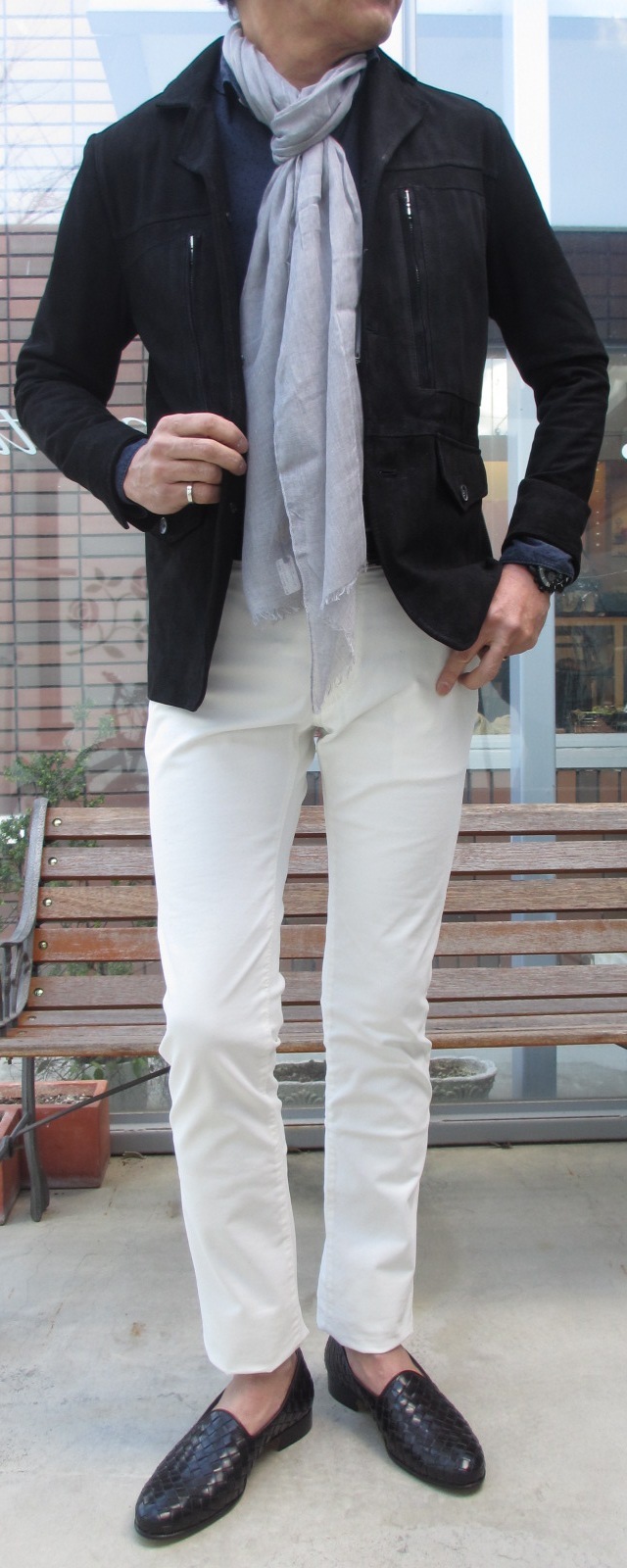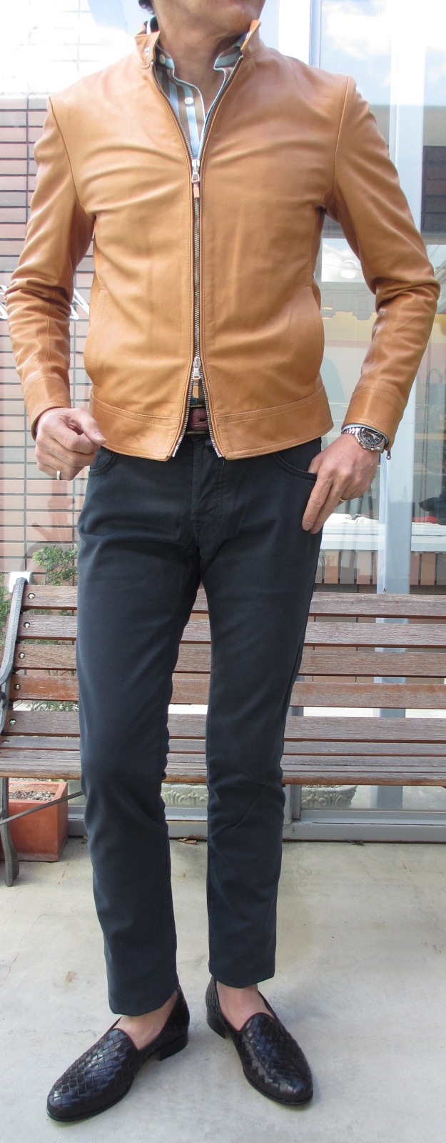 昔、大好きだったブランドが「hLam」。イタリア人のピエランジェロ・ダゴスティンとスウェーデン人のグン・ヨハンソンが立ち上げたブランドです。現在、このブランドは休止しており、手に入れることはできませんが、展開している期間に何枚かのレザーを購入。その中のお気に入りのレザーが、ヌバックのシングルライダース。休みの日はもちろん、海外出張の飛行機のなかでも大活躍のレザーでしたが、とうとう消耗が激しく、昨年、クローゼットから外してしまいました。バイクに乗るわけではありませんが、無くなると欲しくなるのが、ライダース。このレザー、とても気になります。
