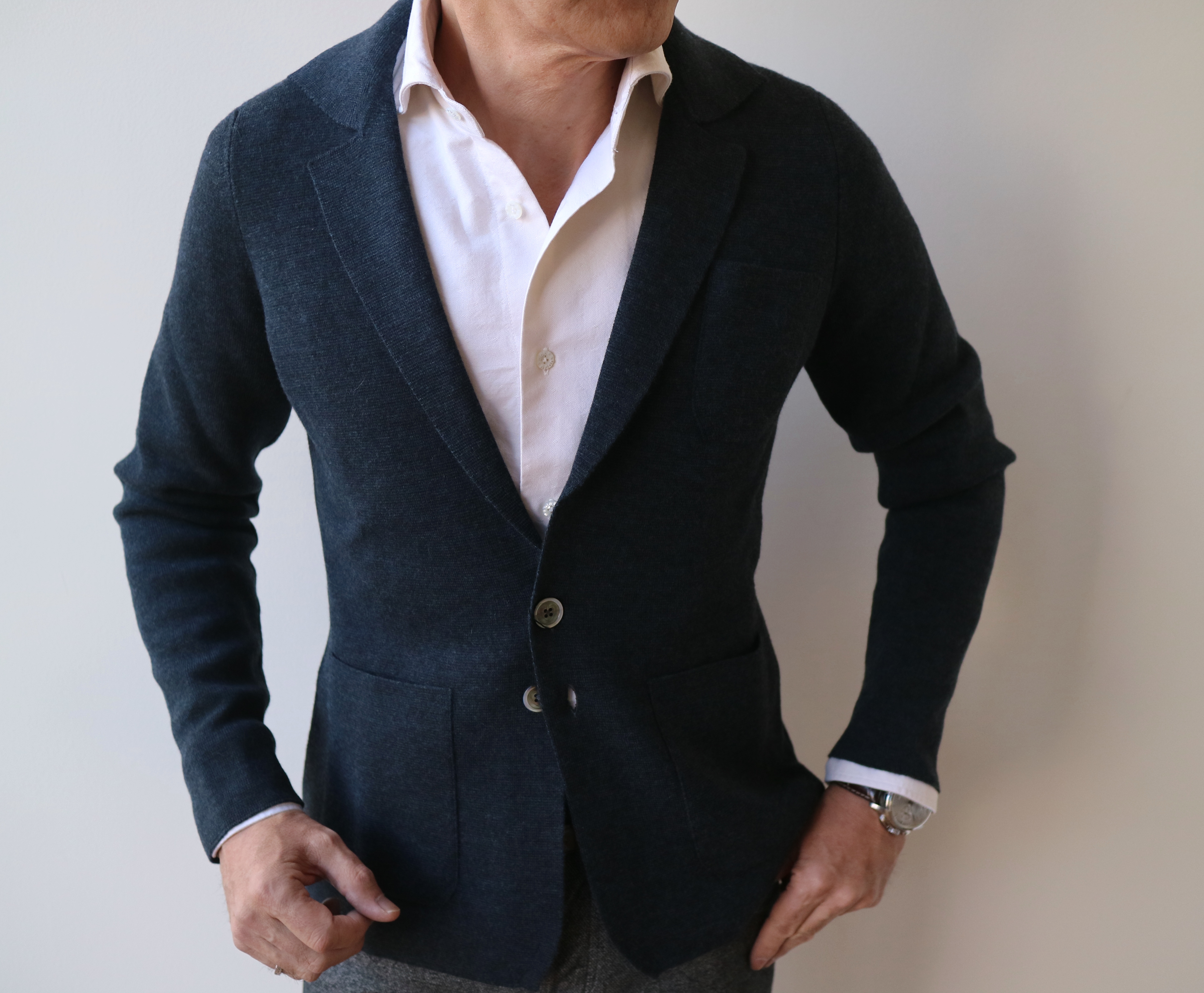 エージェントさんからのお誘いが何年も続き、重い腰を上げたのが3年ほど前。「やってよかったぁ~」のクルチアーニですが、特に優れものが、ミラノリブのニットジャケット。この春、コットン素材を入手。クオリティの高さを改めて実感です。