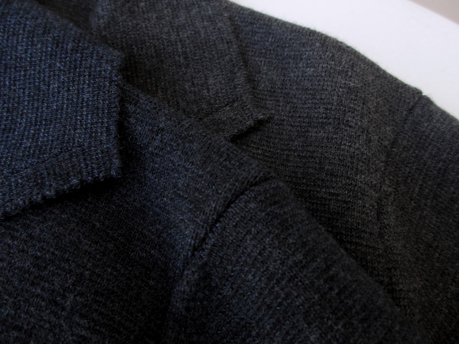 昨年のモデルと変わったのが、着丈。上の写真をご覧になっていただくと、一目瞭然です。3.0cmから4.0cmほど短くなりました。そして忘れずにお伝えしなければならないのが、価格。昨年が127.000円だったのが、123.000円に値下がりしました。ニットとしては決して、安くない価格ですが、その価値は十分にあるミラノリブのニットジャケットです。