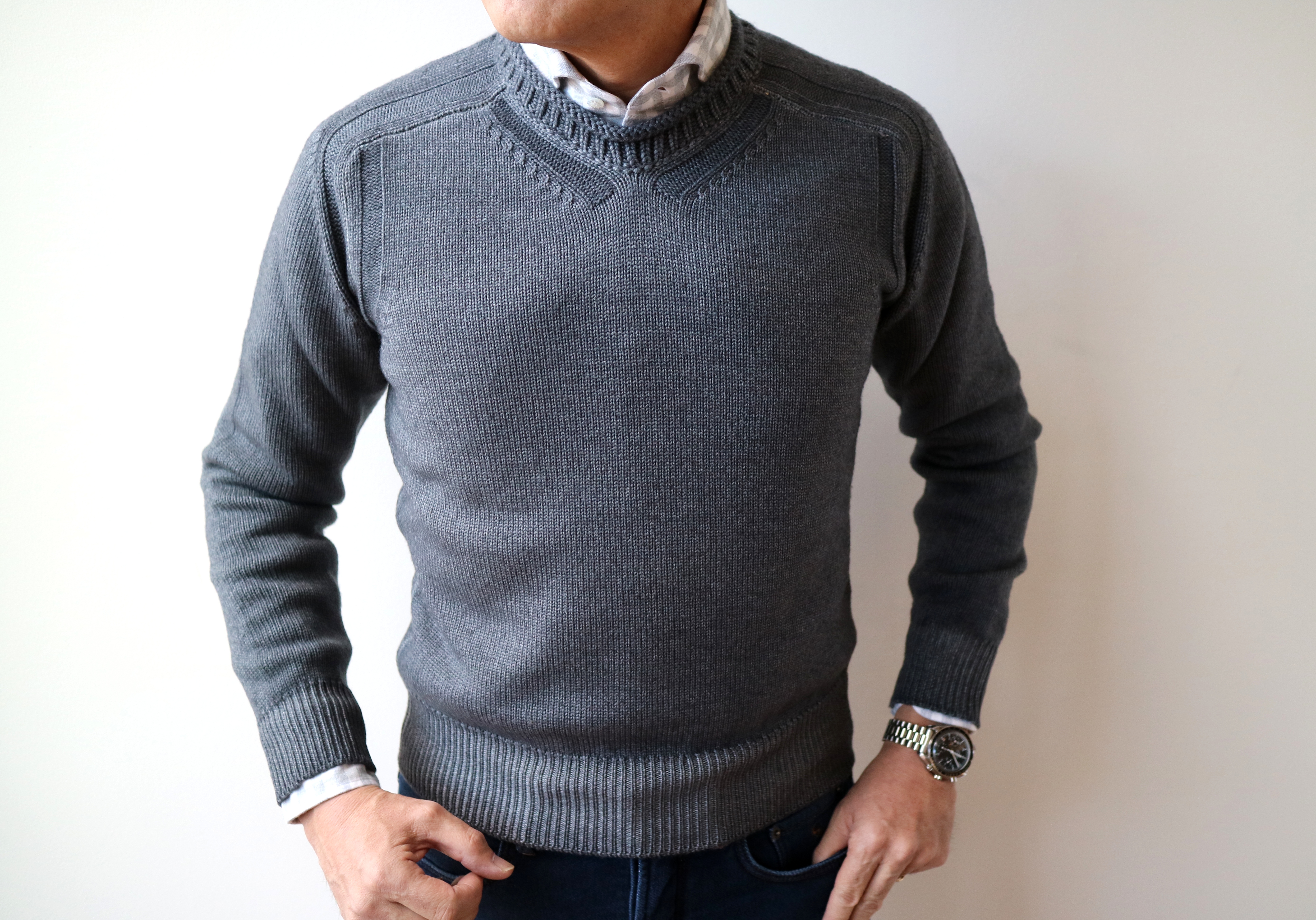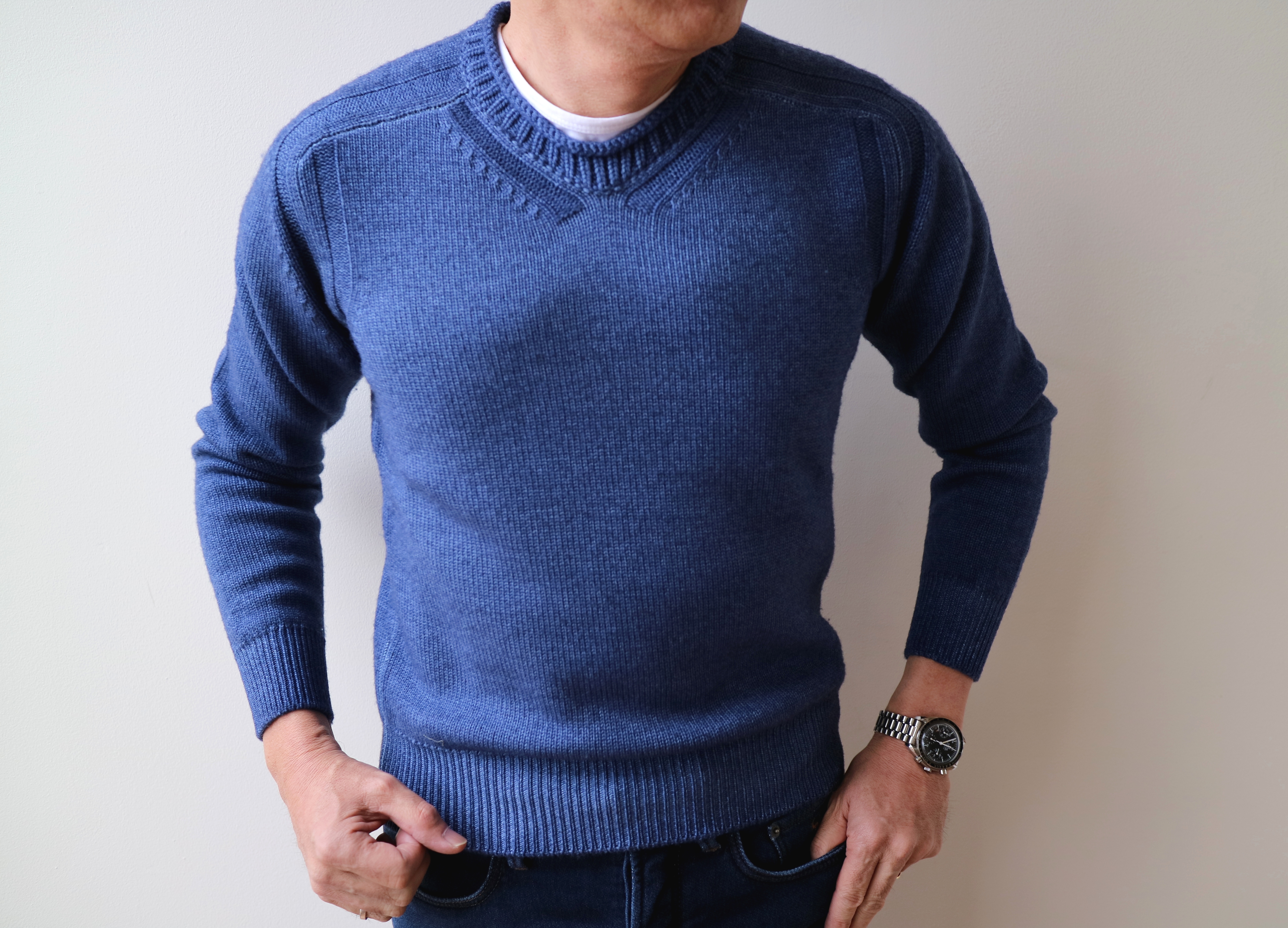 【Cruciani/クルチアーニ】のコレクションの中で定番であり、人気のあるニットが、27ゲージと9ゲージのコンビシリーズ(11月11日公開)。こちらは、9ゲージの糸を使ったプルオーバーです。