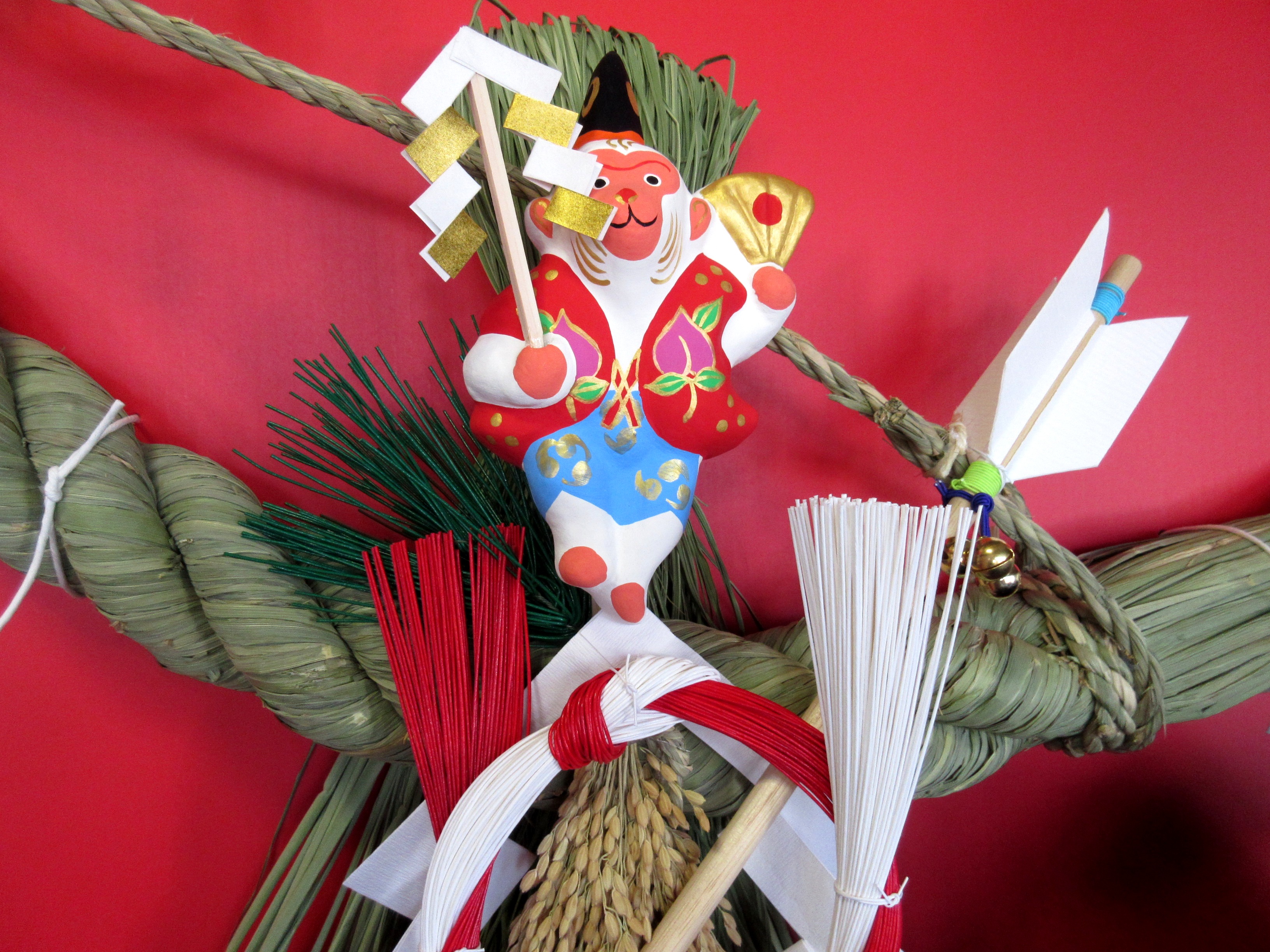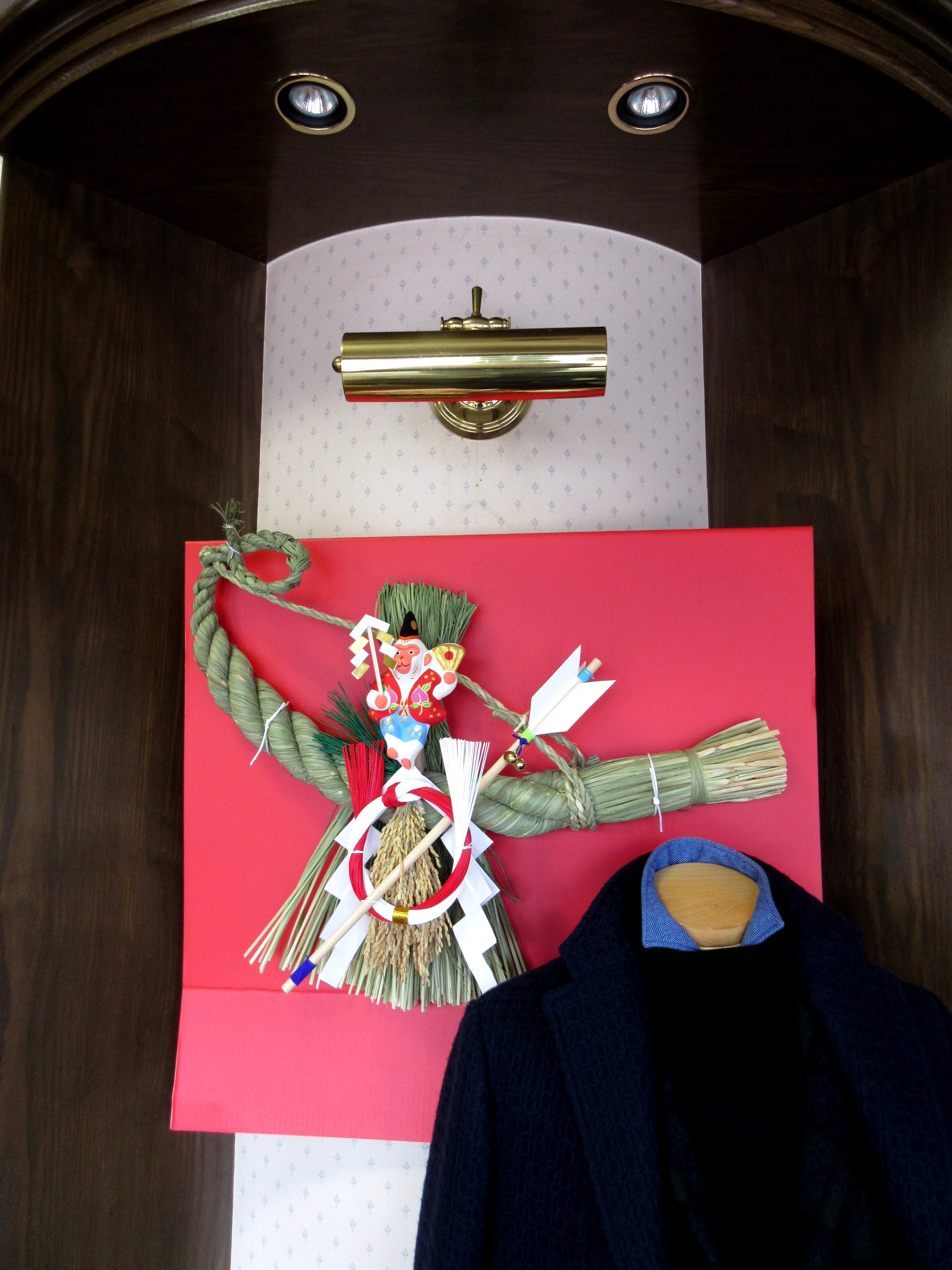 グローリーガイの玄関を入れと、正面に飾られている"えと縄"。未(ひつじ)から申(さる)へとバトンタッチです。駅伝と違い、襷が切れることはありません。その年の干支を飾り付けた"えと縄"は、干支の力を授かり、一年を健康で心豊かに過ごすせるようにと願いが込められています。一年を通して飾られているのをご覧になって不思議に思われる方もおありでしょうが、"えと縄"には、そんな意味があるのです。