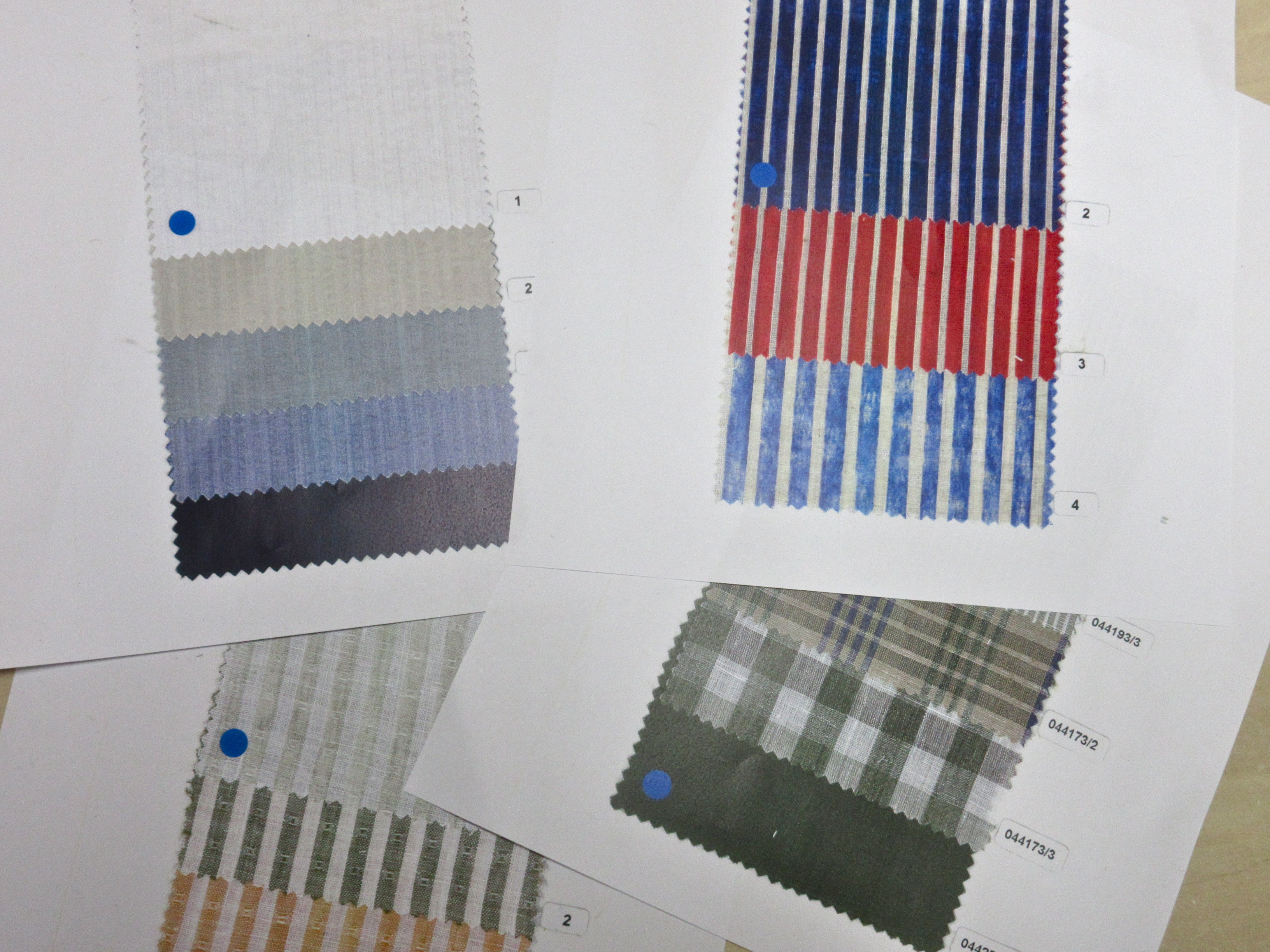 「USTICA」でオーダーしたのは、シャドーストライプのホワイトと鮮やかなブルーベースに白ストライプ、オフベージュにジャカード織りが施されたロンドンストライプの3色。他にも、今シーズンからかなり気になっているオリーブと、画像はありませんが、毎度ご依頼を頂いておりますハニカム鹿の子のホワイトを、追加でオーダーしております。