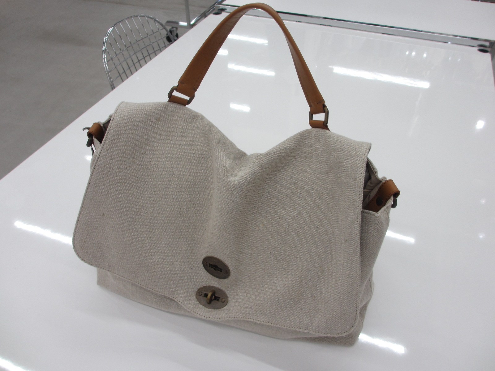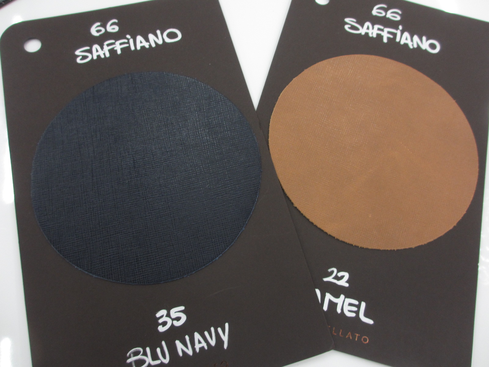 前回の展示会でオーダーしていた「POSTINA」は、新素材のキャンバス地を3色、ツヤのある表面と重厚さのある質感が定評の「SAFFIANO(サフィアーノ)」で2色をセレクトしています。