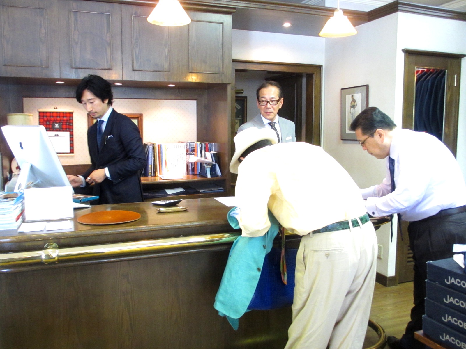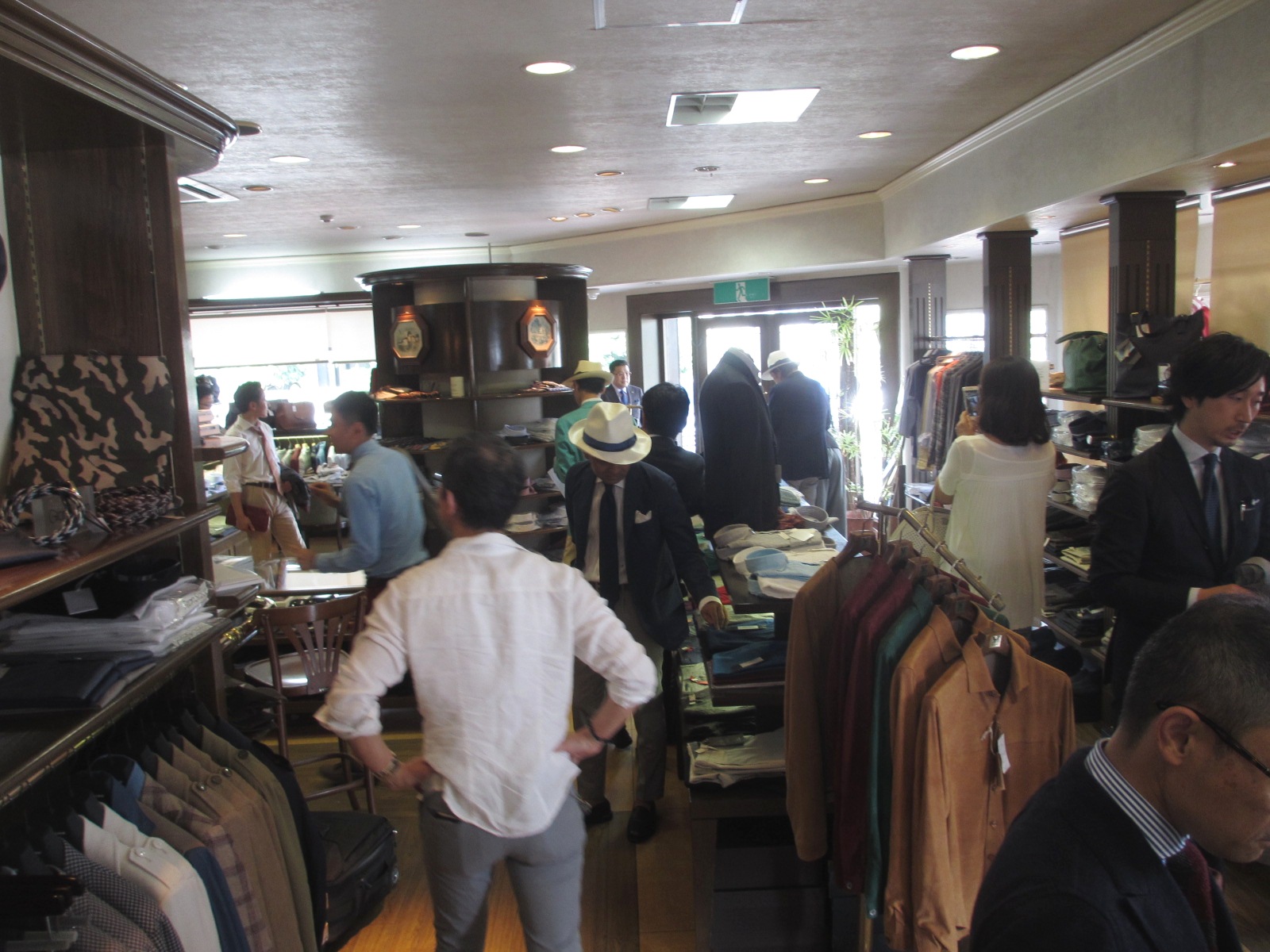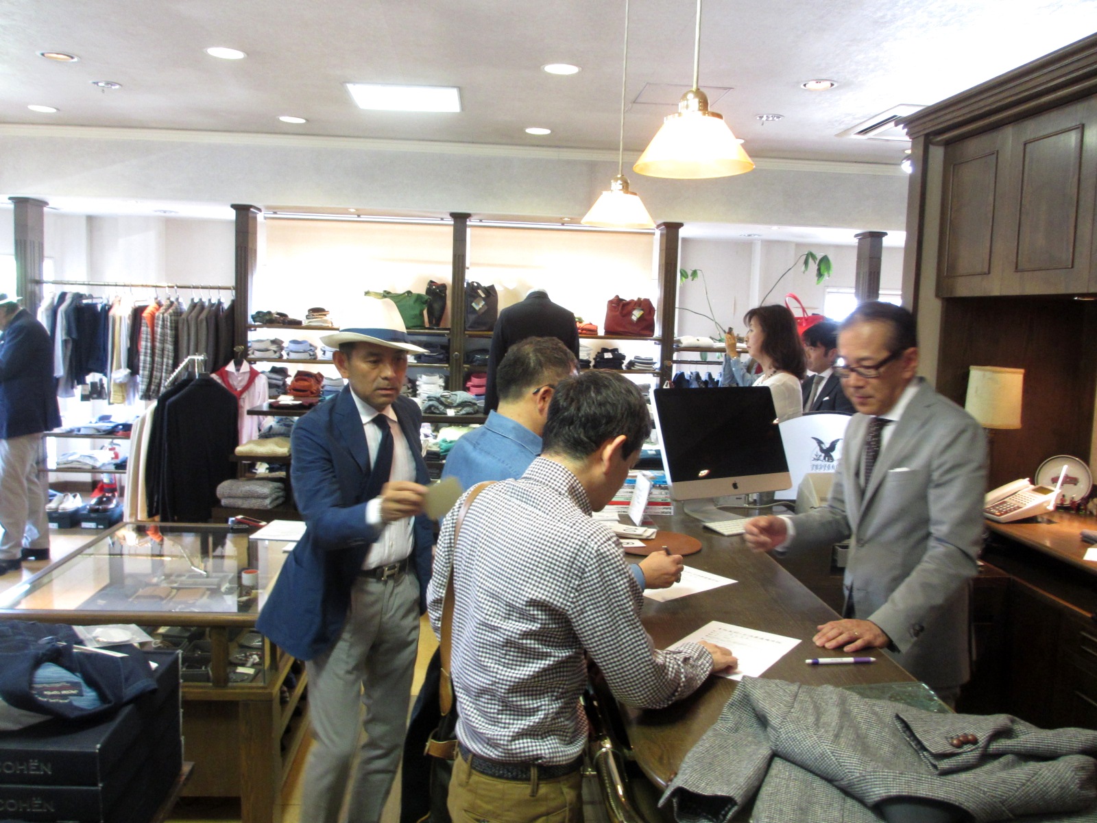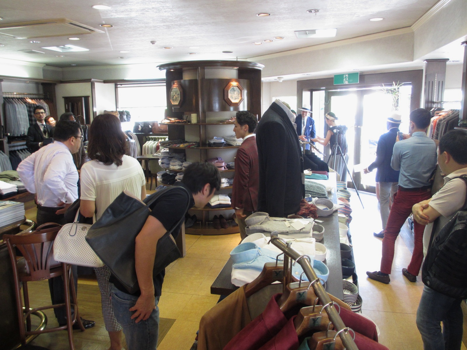 当初、予定していた人数を大幅に上回り、なんと30名の方にご参加頂き、店内は外気温以上に暑く盛り上がりました。今回のテーマが「秋冬を意識したVゾーンのコーディネート」。汗をかきながらの撮影でしたが、カメラの前に立っている緊張した面持ちと終わった後の満足げな表情は、私たちを幸せな気持ちにさせてくれました。参加された全ての方、また見学に来られた方々に心よりお礼申し上げます。また、この良き機会を与えてくれたTIBERIO FERRETTI(ティベリオ・フェレッティ)のエージェントであるコマコ・ワークスの駒井氏に、また師範代の青柳氏、Men's EXの長野氏、そしてカメラマンの高倉さんに感謝です。お疲れ様と共にありがとうの気持ちでいっぱいです。