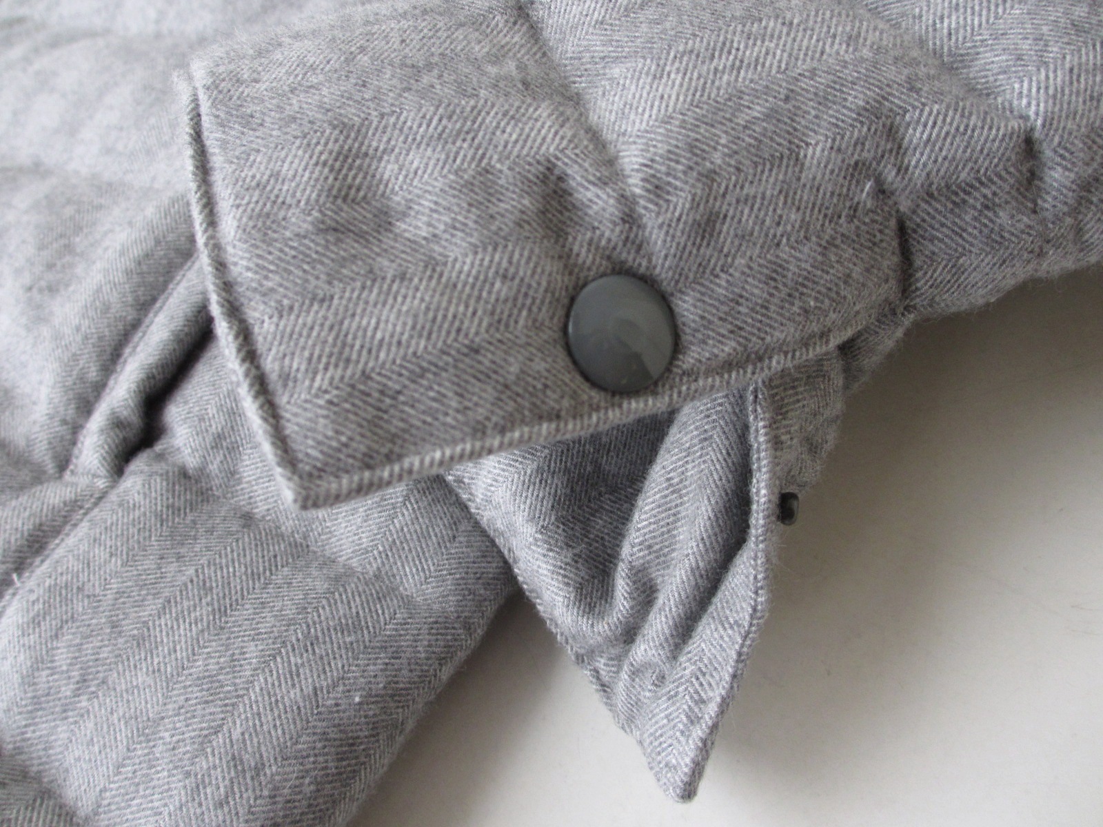 ウールに見せて、実はコットン。写真で見るほどに起毛感はありませんが、滑らかな肌触りです。内蔵されているのは、ダウン&フェザーで街着での防寒性に不足はありません。ポケットも両サイドにウォームポケット、内側にはジップ付きポケットがサイドに付き、バック機能としての役割も果たしてくれます。