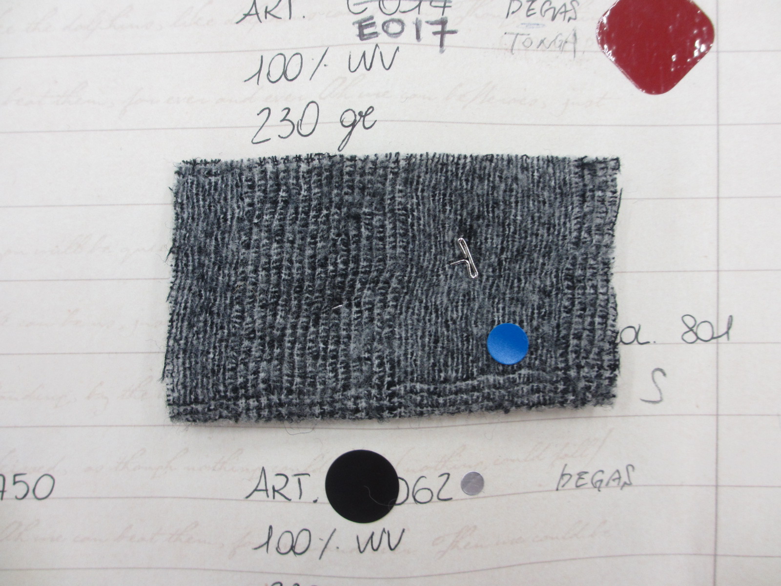 グラム数を見ると、230グラムと書いてあります。ウール100%のソフトツィードと言うより、まさにライトツィード。セレクトカラーは青印のキャメルとブラックの2色です。