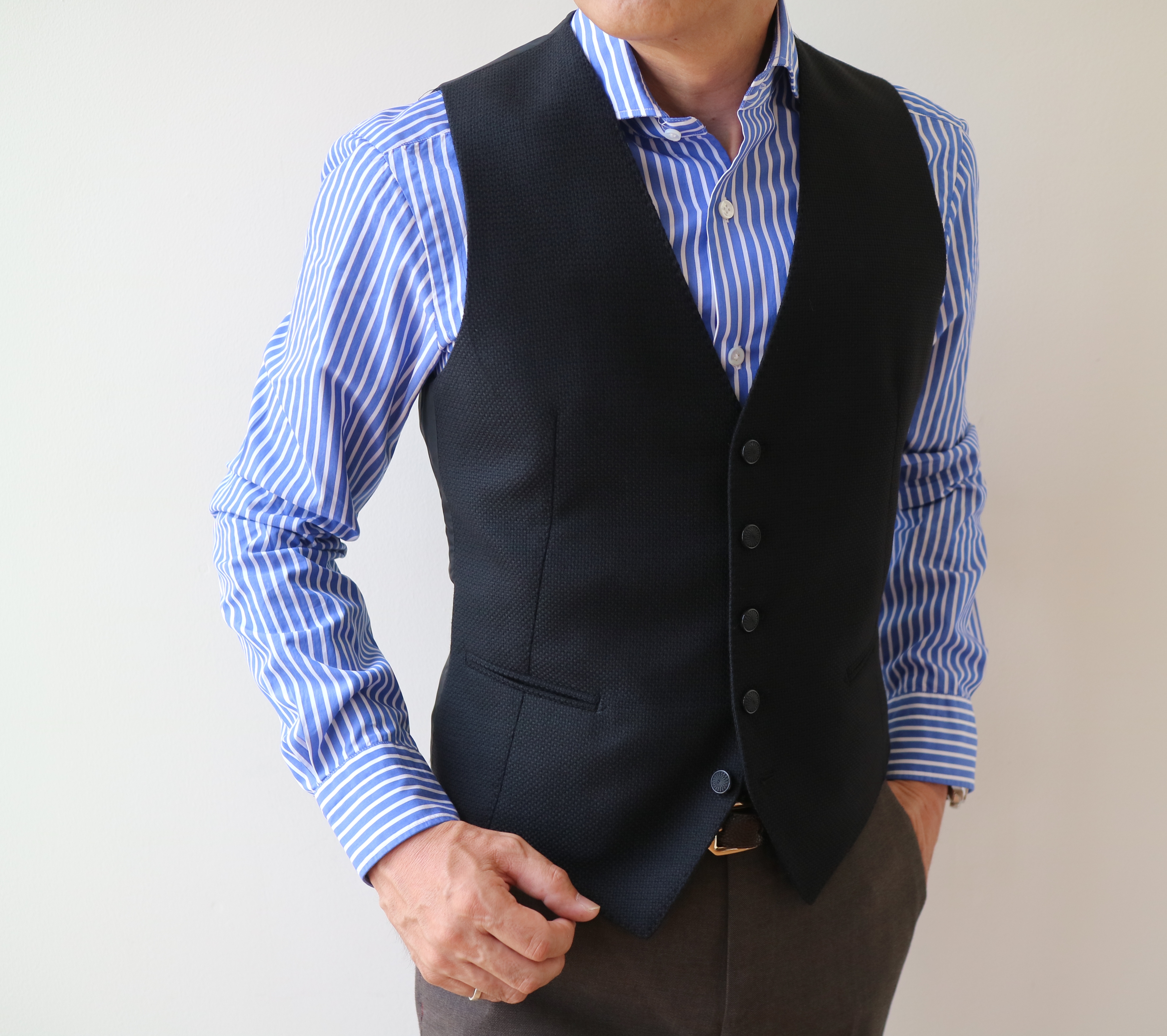 ボルドーやボトルグリーン、そしてグレイの台頭から、黒は気になる色です。特に全体を引き締め、オケージョン用としても使えるウールのブラックジレは揃えておかれると良いでしょうね。