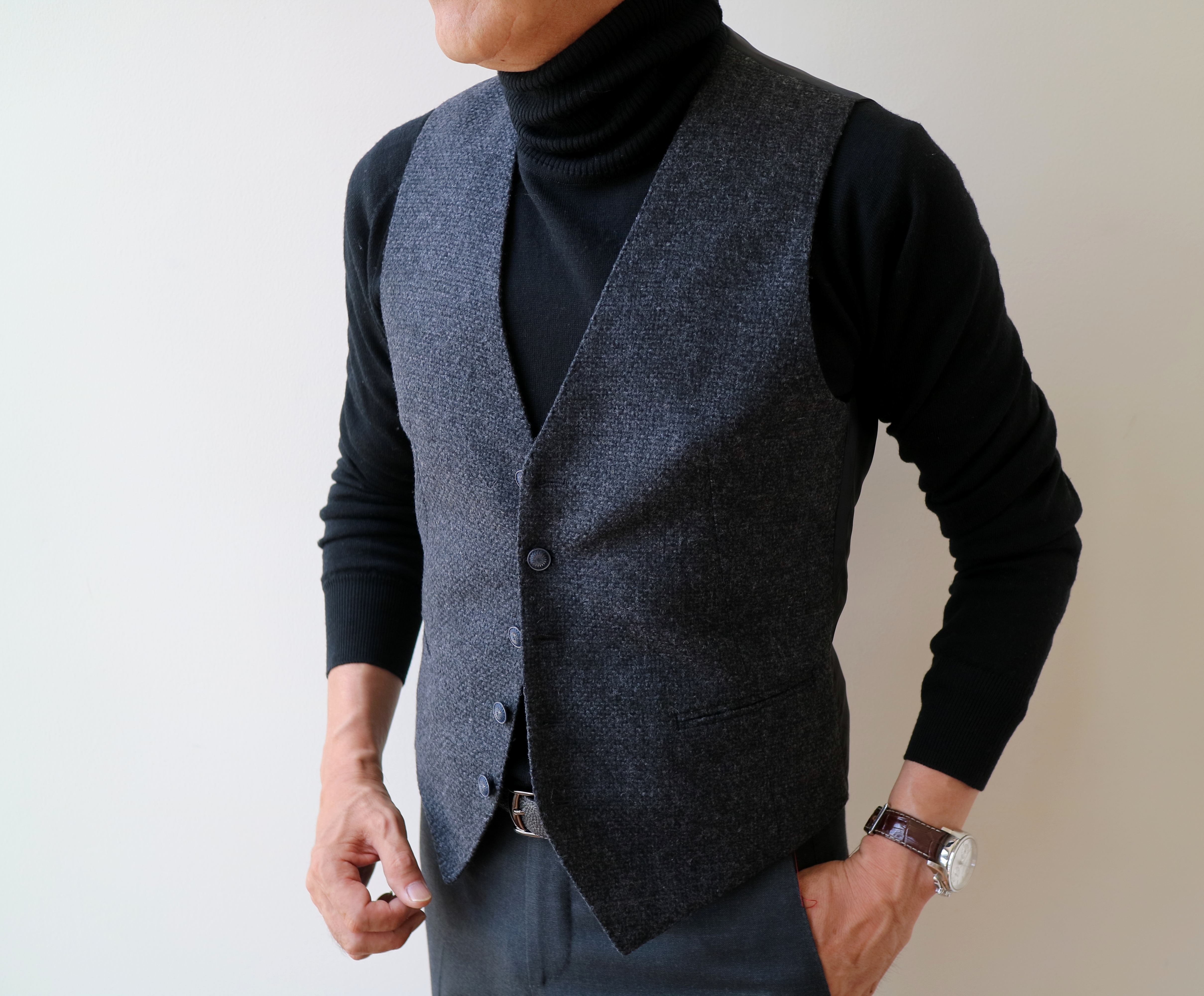 MODEL:「BRIAN」 ウール無地ブラックジレ