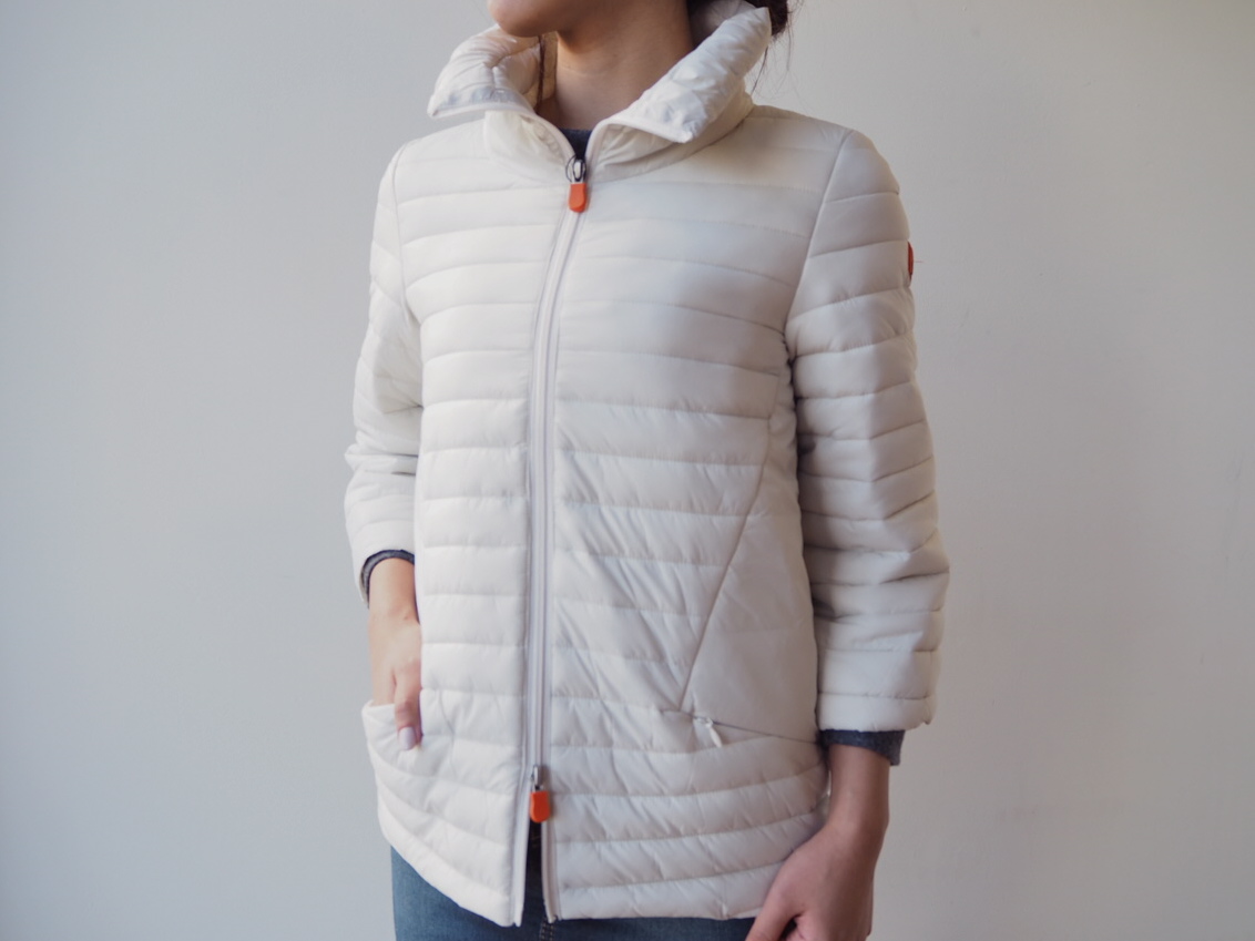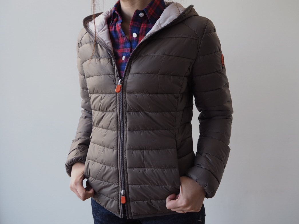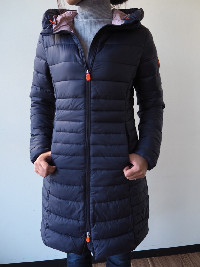 【Save the duck】のコンパクトでシンプルなデザインは、女性がデイリーに着るのにぴったりです。このモデルはフード付きだけ合ってカジュアルダウンした雰囲気。首まで閉めて顔だけ出す、所謂"Sleeping bag(寝袋)"のようなジッパーが、冬のアウトドアの雰囲気を演出してくれています。3型共素材は全て「GIGA」というシャイニーナイロン素材をセレクト。こちらのモデルは内側にスモークがかかったローズカラーを配色してあるので、スタンダードなネイビーが優しい品を感じさせてくれます。