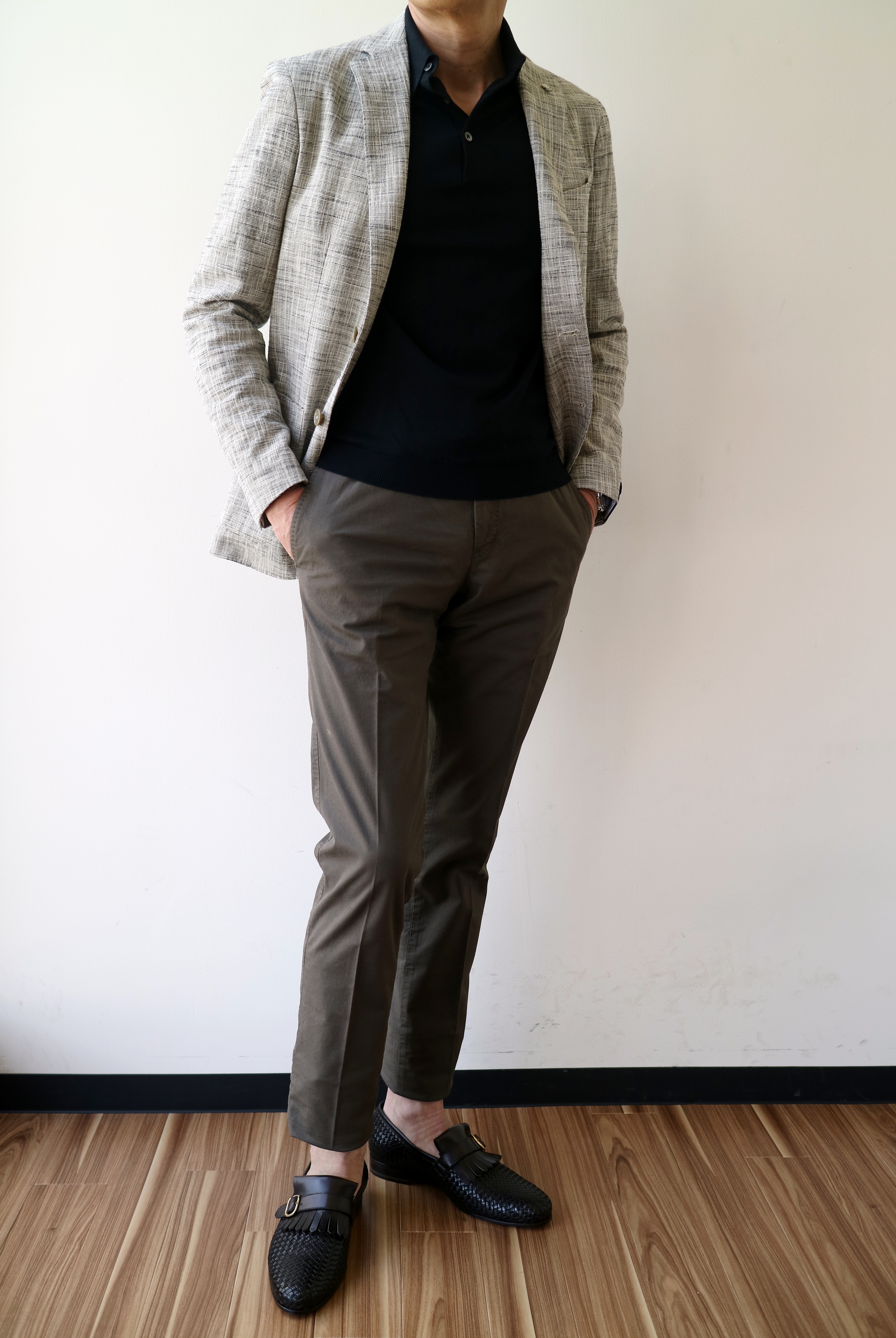 今季、初デビューさせたStile Latino/スティル ラティーノ。修理から上がってきて、着るのは2回目。この夏、ニットポロを使ってのコーディネートは外せません。