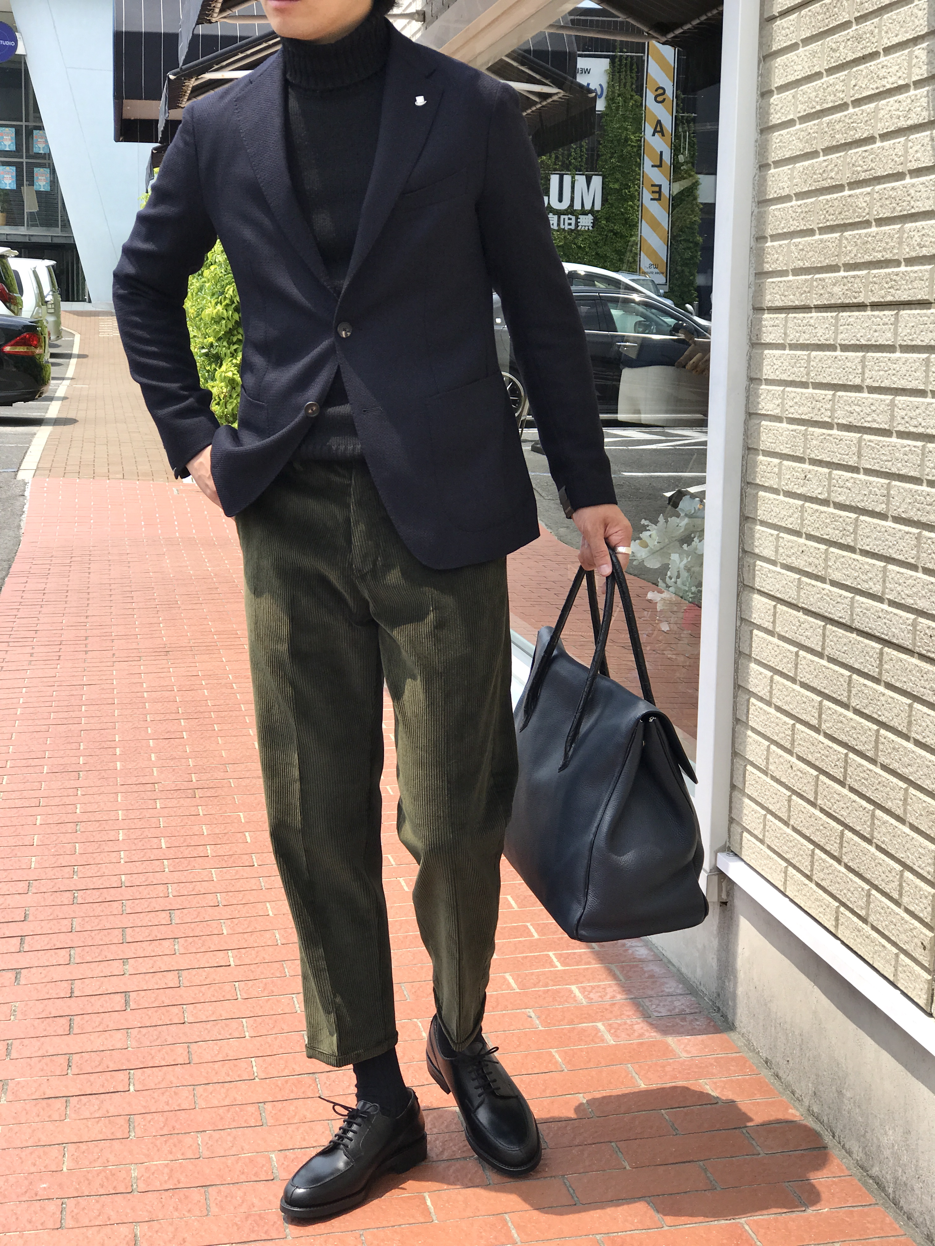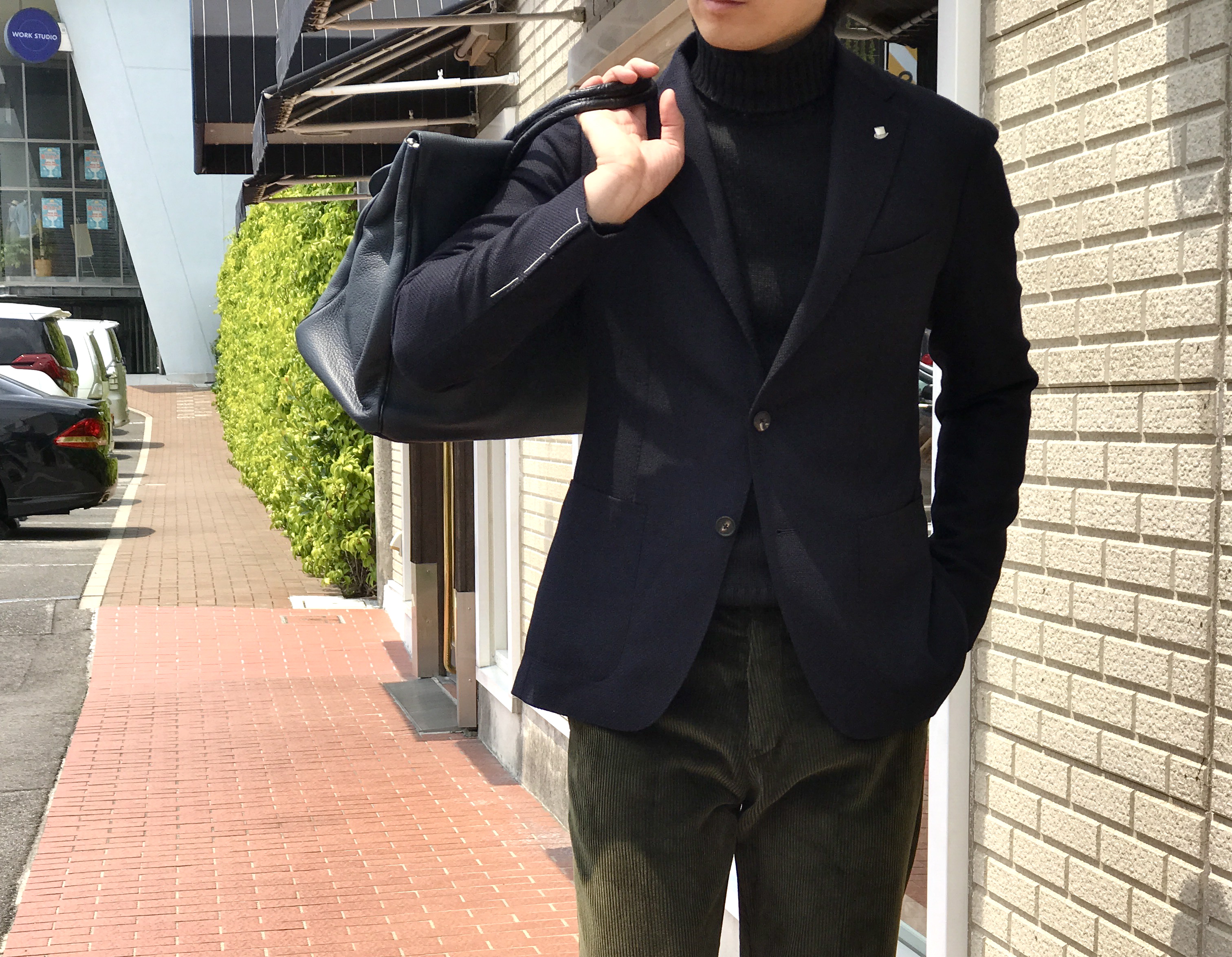 De Petrilloではフラノ生地で提案していましたが、シンプルなコーディネートでも、生地に表情があるものはそれだけでサマになります。
