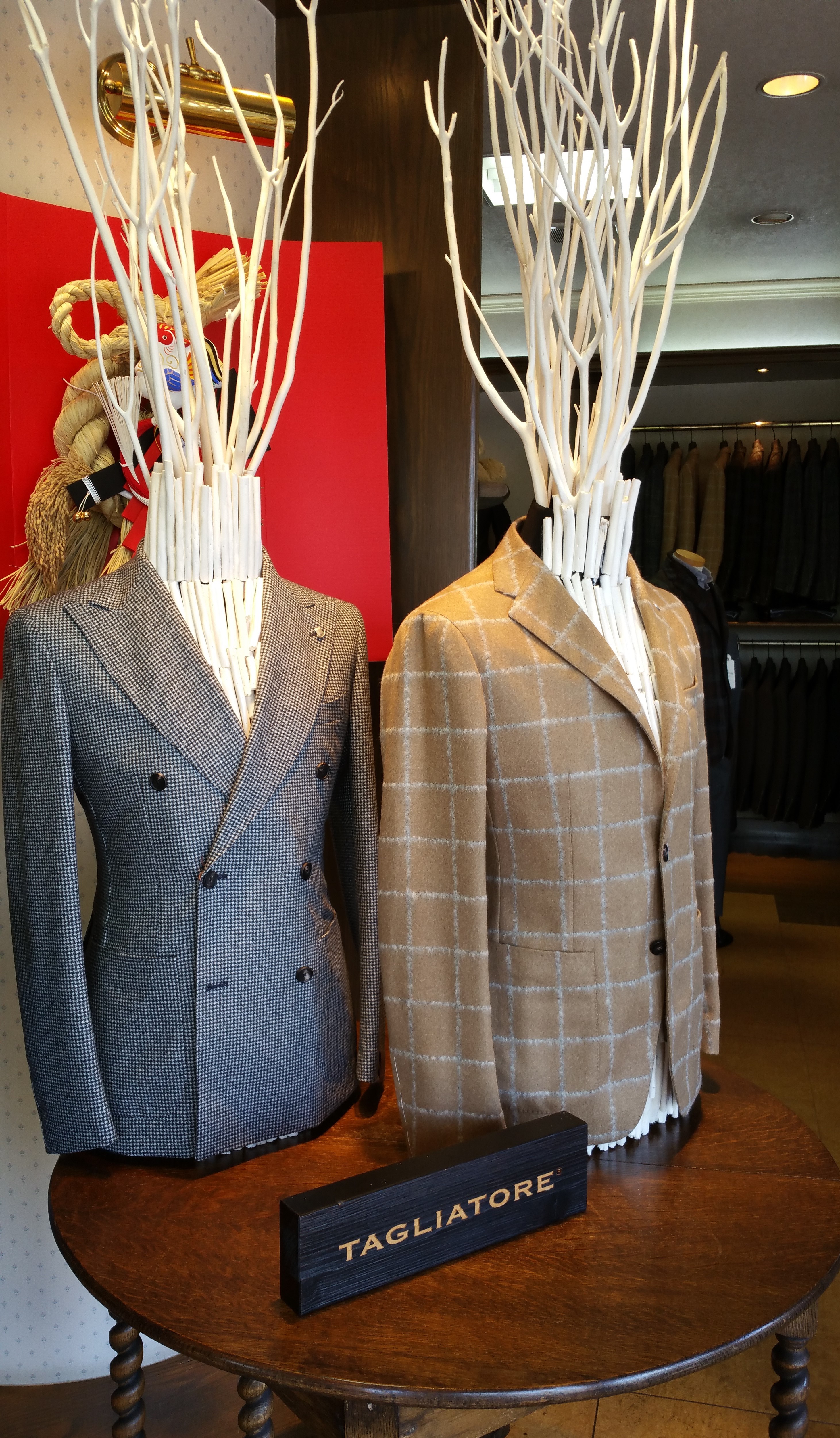 ようやくフェアらしくなった売り場。昨日から開催させていただいている【TAGLIATORE/タリアトーレ】の「W/bonus Fair」。お馴染みのトルソーが正面入り口に飾られ、気分は盛り上がります。この暑さ、お客さんの反応は?...といえば、ディスプレイされた2着が気に入られ、迷われた末、2着買いという幸先の良いスタートです。ありがとうございます!!