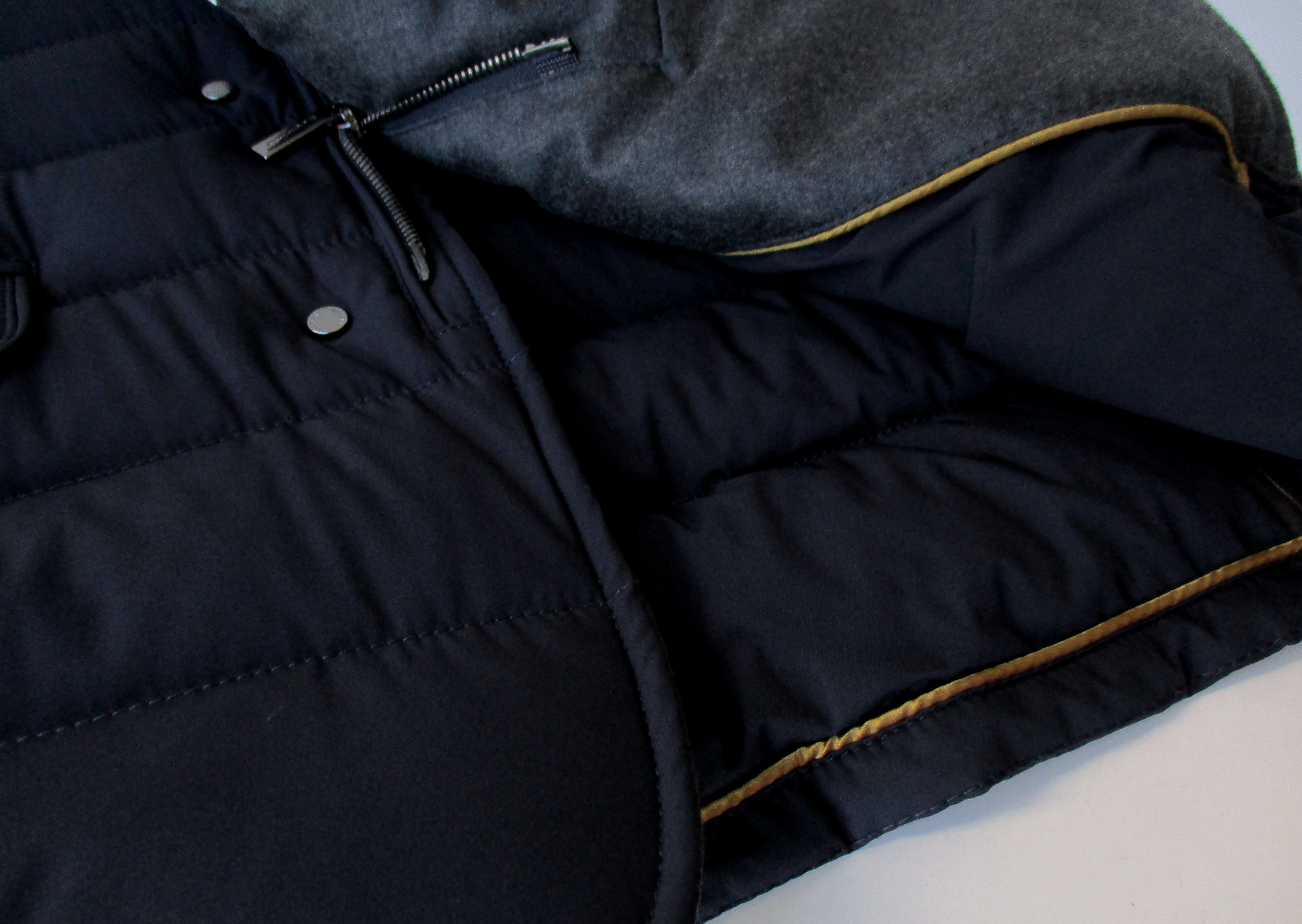 ダウンパックを細かく分け人間の身体の凹凸にあわせたり、キルティングの幅を狭くする事で、すっきりしたフォルムに。マットなストレッチナイロンとMade in Italyに拘って仕上げられたパーツとが、絶妙なハーモニーを奏で、美しいダウンジャケットに仕上げています。