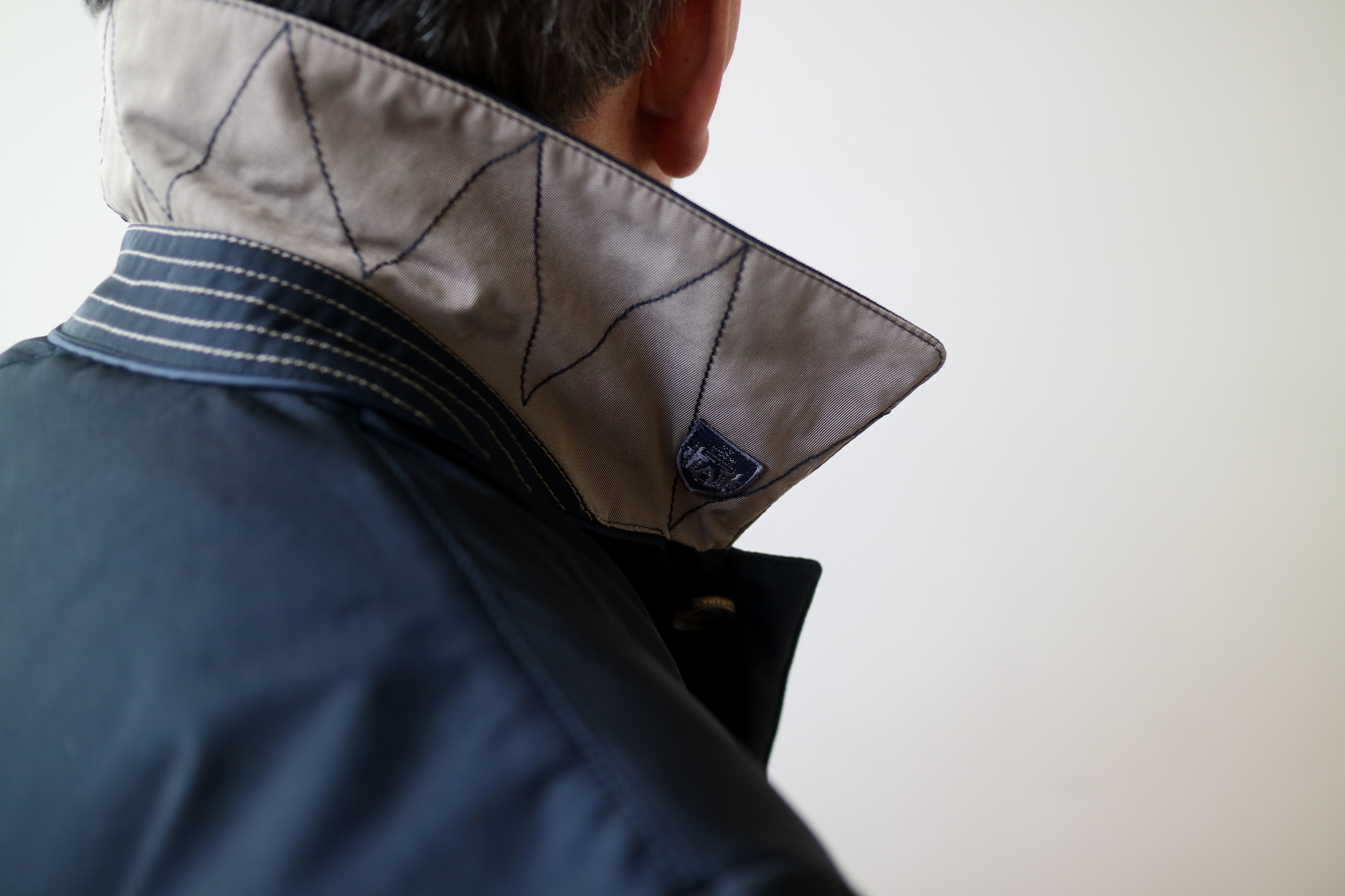 台襟と襟のステッチワーク、そしてエンブレムはトレードマークです。