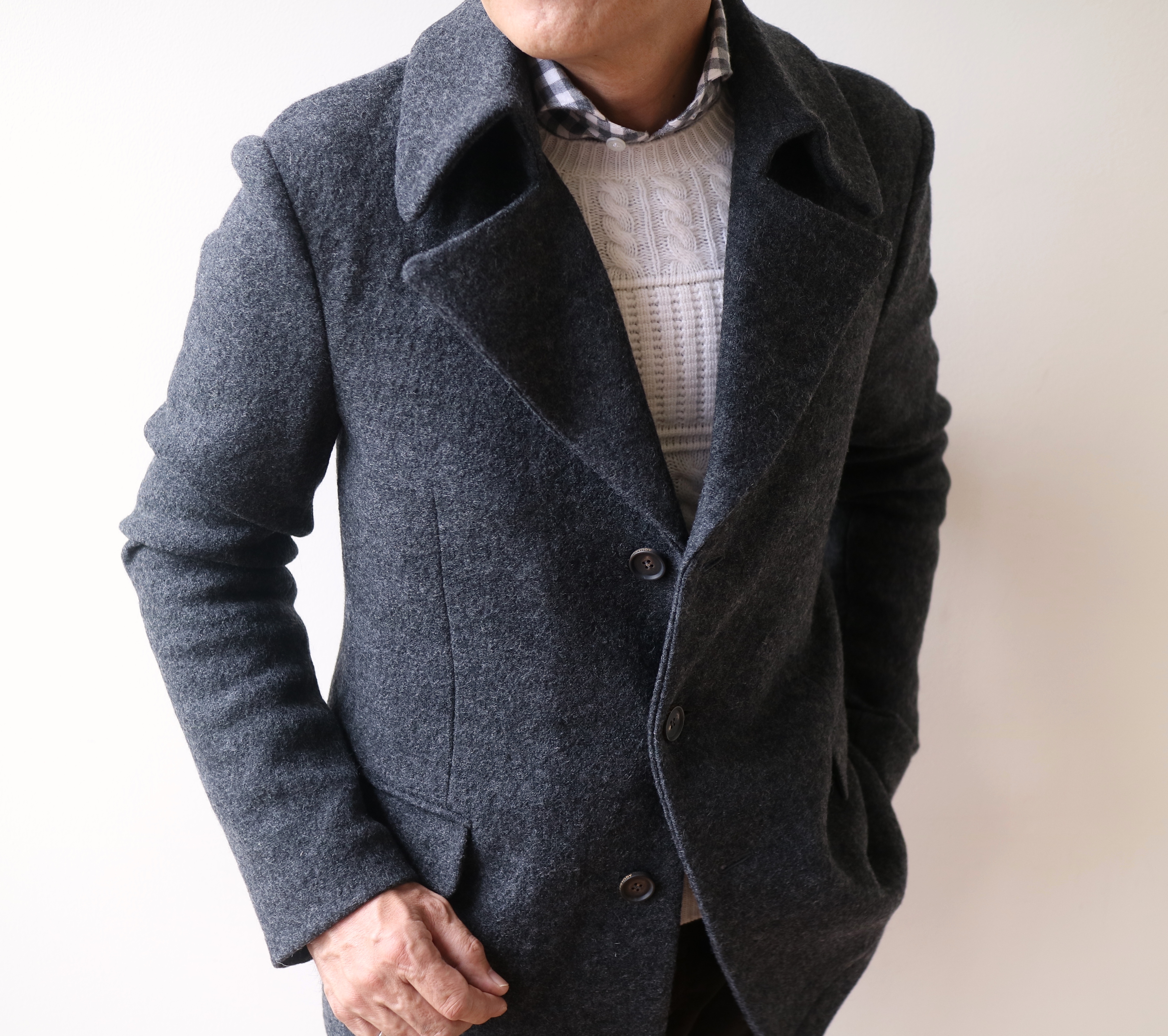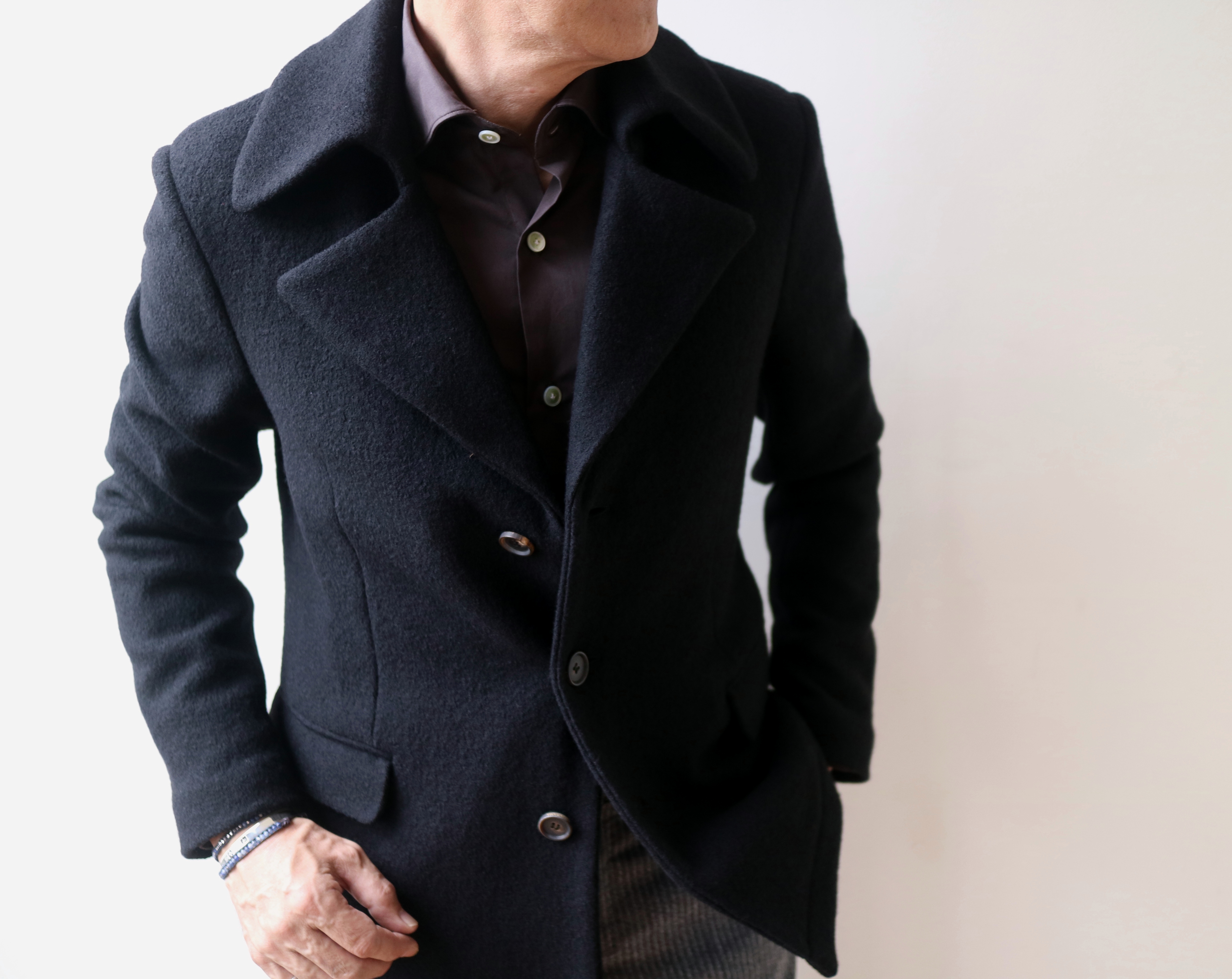 ウールの温もりが恋しくなる季節、【AQUARAMA/アクアラマ】から素敵なジャケットが入荷しました。いやコートと言ったほうがよいでしょうか。Pコートの顔をもったシングルのショート丈コートです。