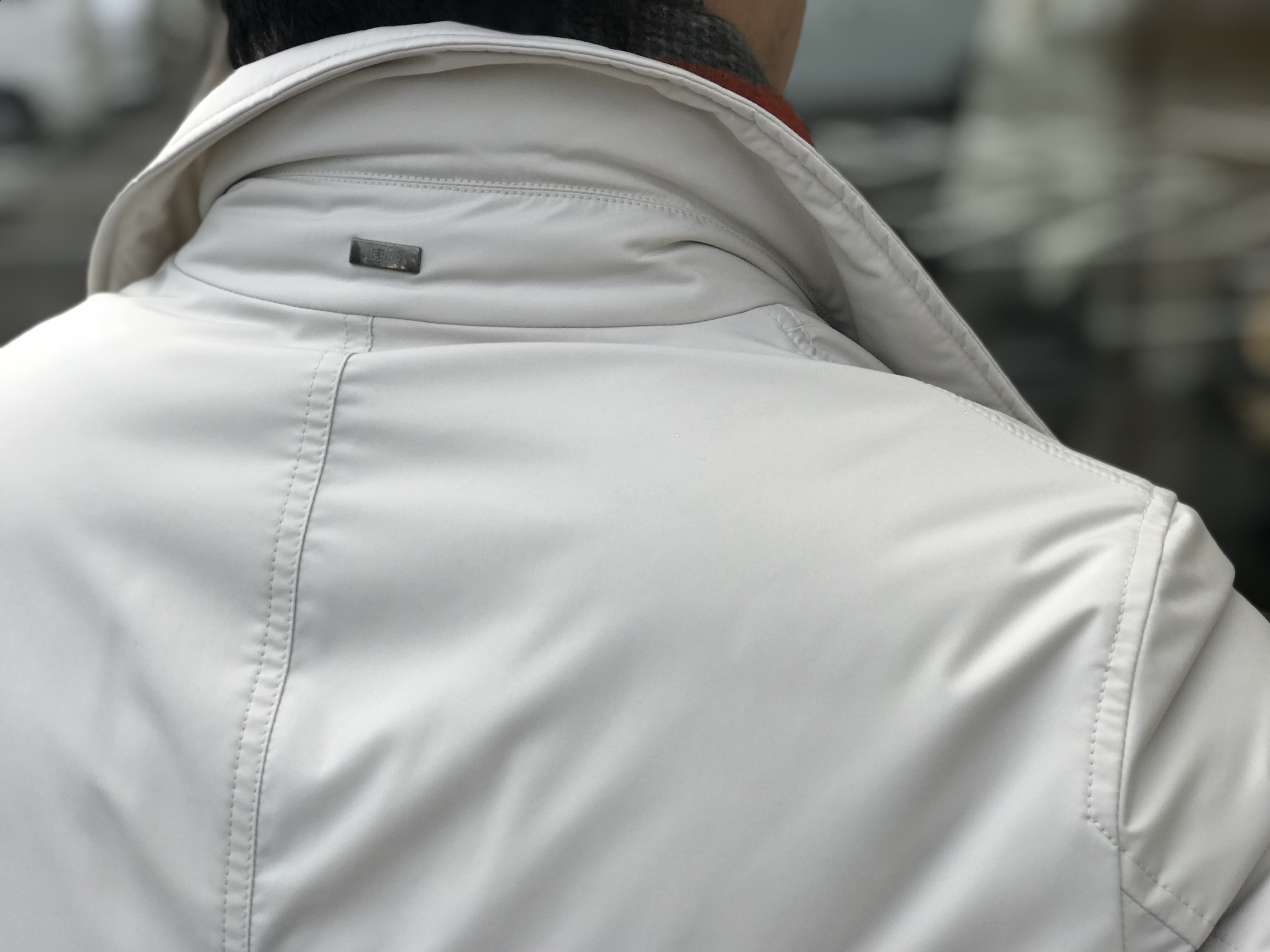 私たちにとってもチャレンジ的提案のウィンターホワイト。他ではあまりお目にかかれないレアカラーではないでしょうか。オーダー時には、HERNO JAPANのスタッフにもお褒めの言葉(?)を頂いたイチオシのセレクトカラーです。