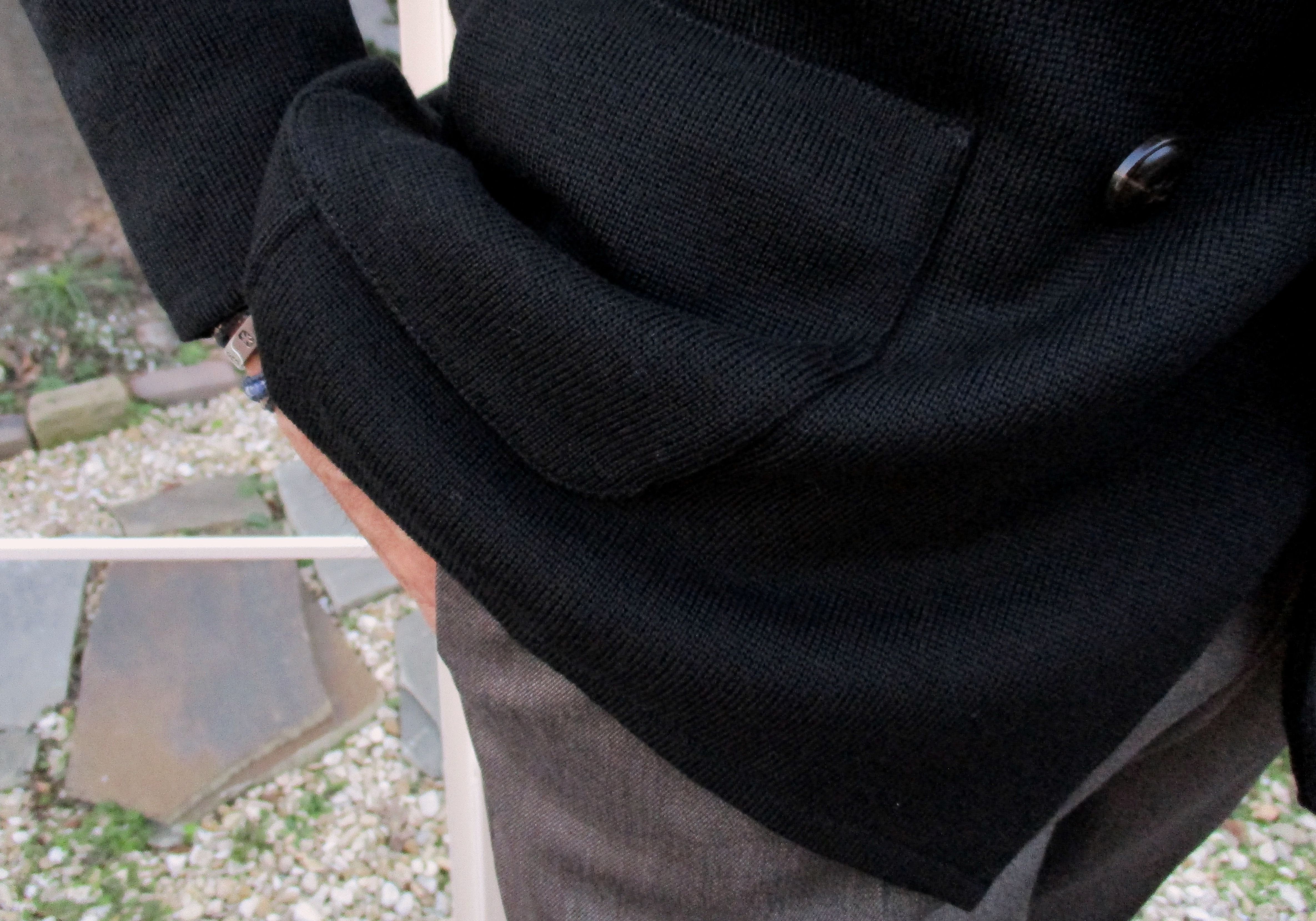 本日は、カメラマンのジュニアが休みのため、カシェート撮影です。遠めで見ていると、ダブルブレストのジャケットのようですが、実は伸縮性のあるニット。今までは着丈が短かく、コンパクトなデザインが主流でしたが、今回、展示会で目を引いたのが、このダブルのニットジャケットでした。ご存知の方も多いかと思いますが、ラルディーニのニットを請け負うのは、現在、蔵庫/マガジーノで展開中のDREW&CO.(ドリューアンドコー)のアンドレア・アンドレオリ氏。業界の洒落者としても有名ですね。