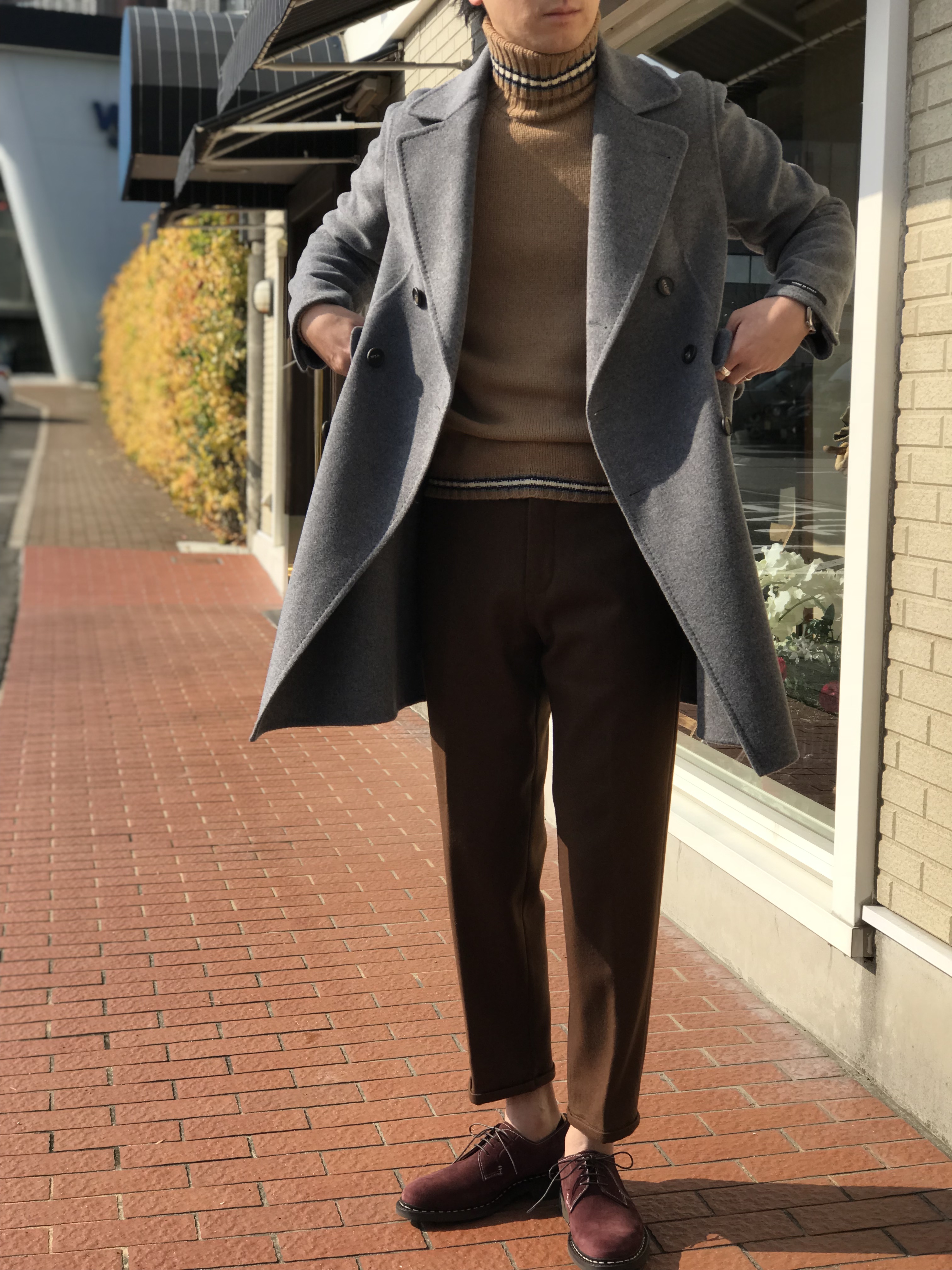 それではご案内です。本日は、タカイがご案内する【TAGLIATORE/タリアトーレ】のウールコート3型。ウールのコートというと、この車社会の岡崎では少し難しい顔をする方もいらっしゃるのですが、決して特別なものではありません。