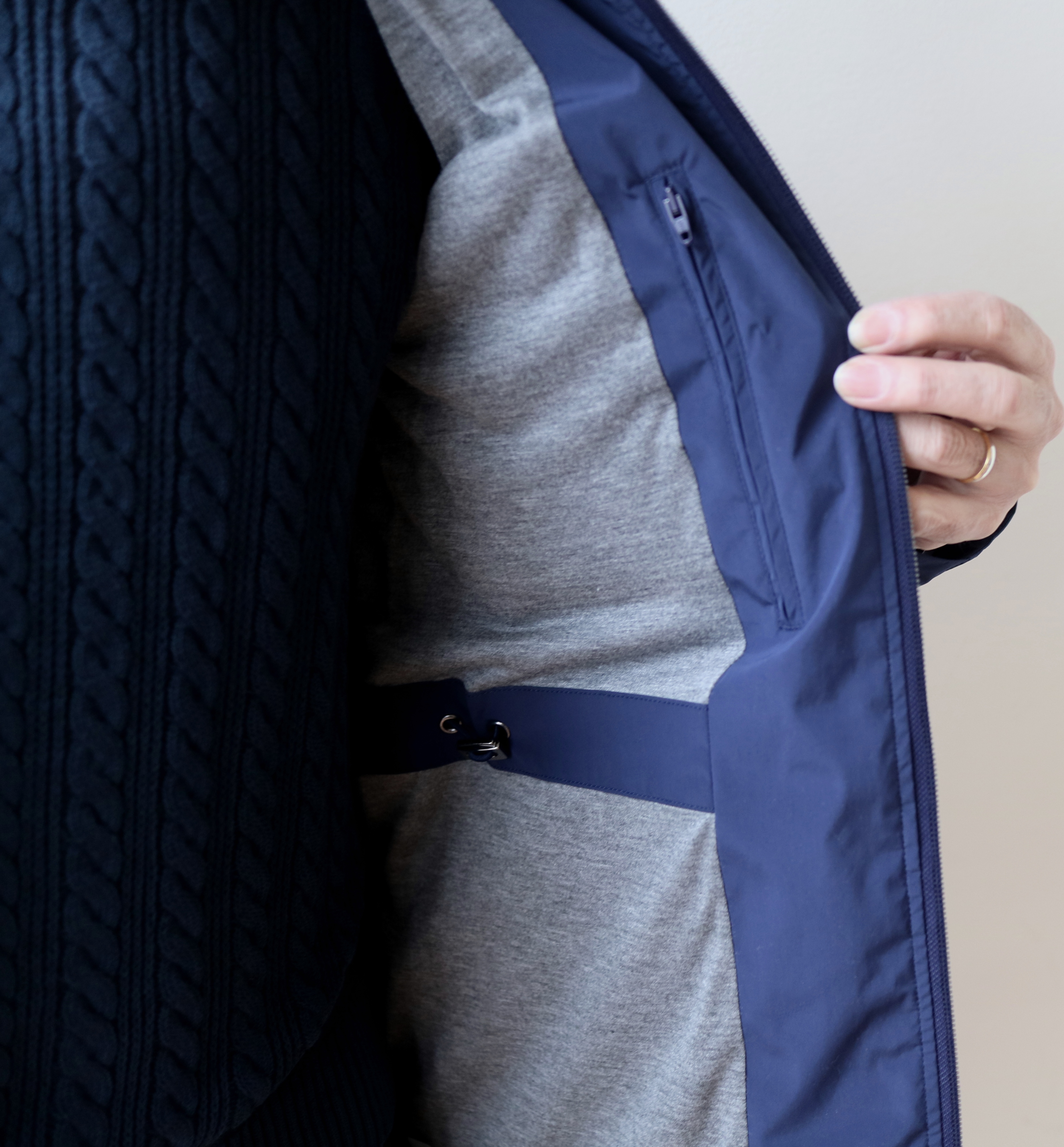 そして、風のある日に役立つのが、ウエストのドローコード。裾にも付いており、環境に応じて調整できます。イタリアが誇るレインコートメーカー【HERNO/ヘルノ】ならではの魅力が詰め込まれた一品です。