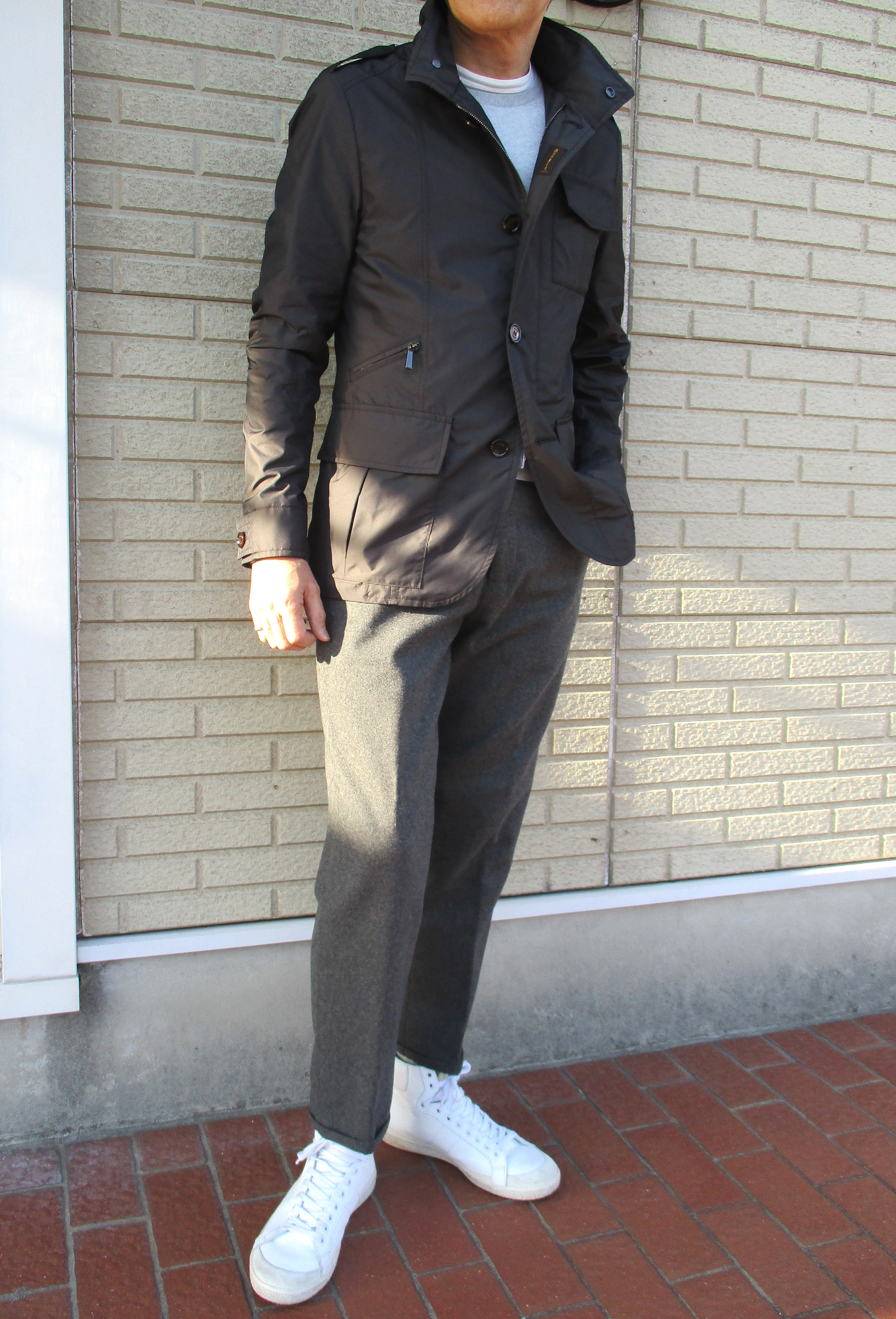 本日の出で立ちです。「また同じパンツにスニーカーだね」なんて言われそうですが、偶々です。ジャケットやスーツの時もありますので、言い訳させてください。それにしても暖かい。寒がりな私でもMooRER/ムーレーのダウンベストを羽織っただけで外を歩けるほどです。でも油断は大敵。そろそろ大きな寒波が近づいてくる予報です。来週の水曜日から東京出張が始まり、たぶん震いながら展示会を巡ることになりそうです。