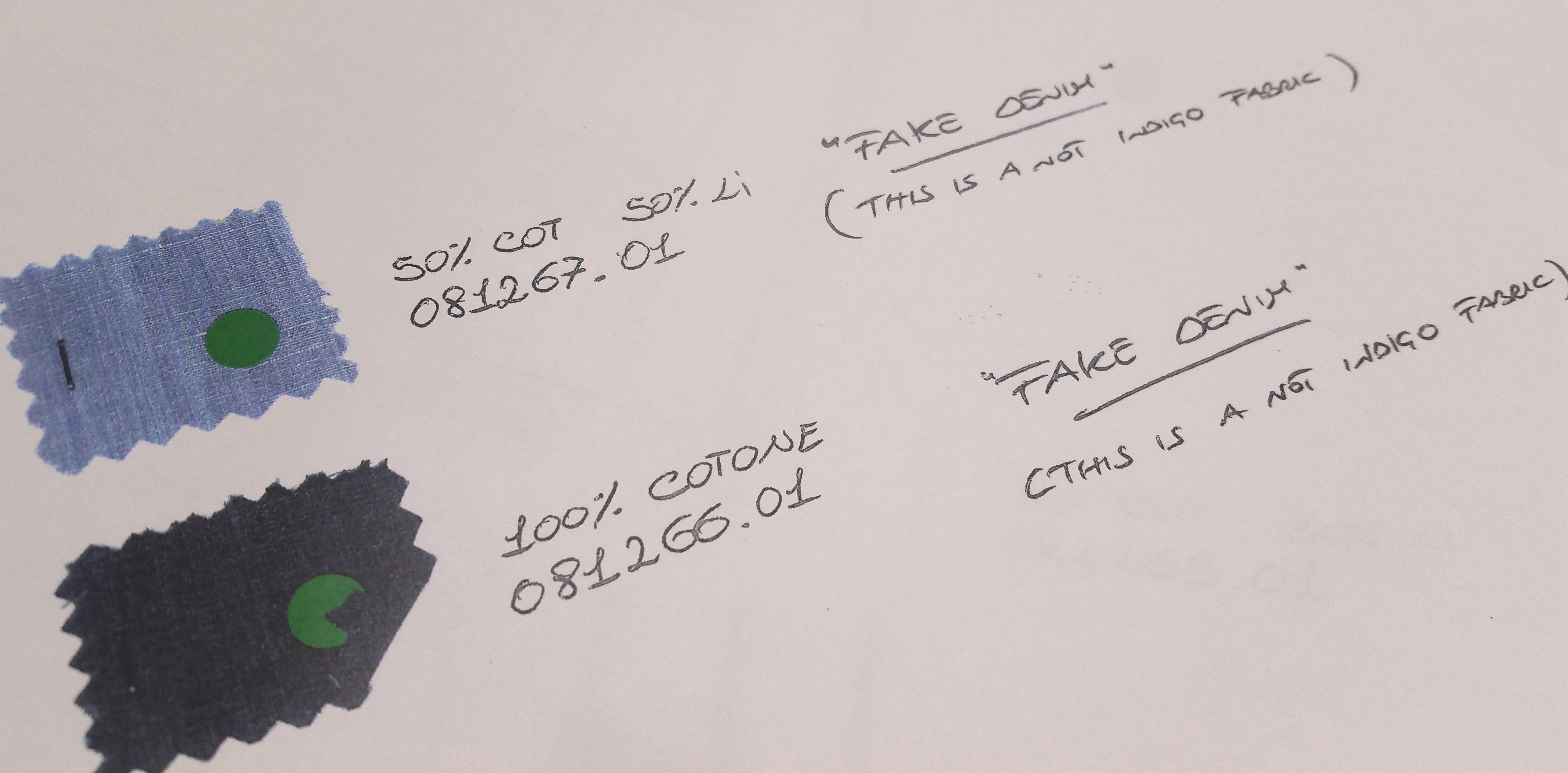 フィナモレの生地番地の中に「DENIM」コレクションがあります。日本のファブリックを使ったものも含まれ、見応えは十分ですが、目を引いたのは、こちらの生地2つでした。