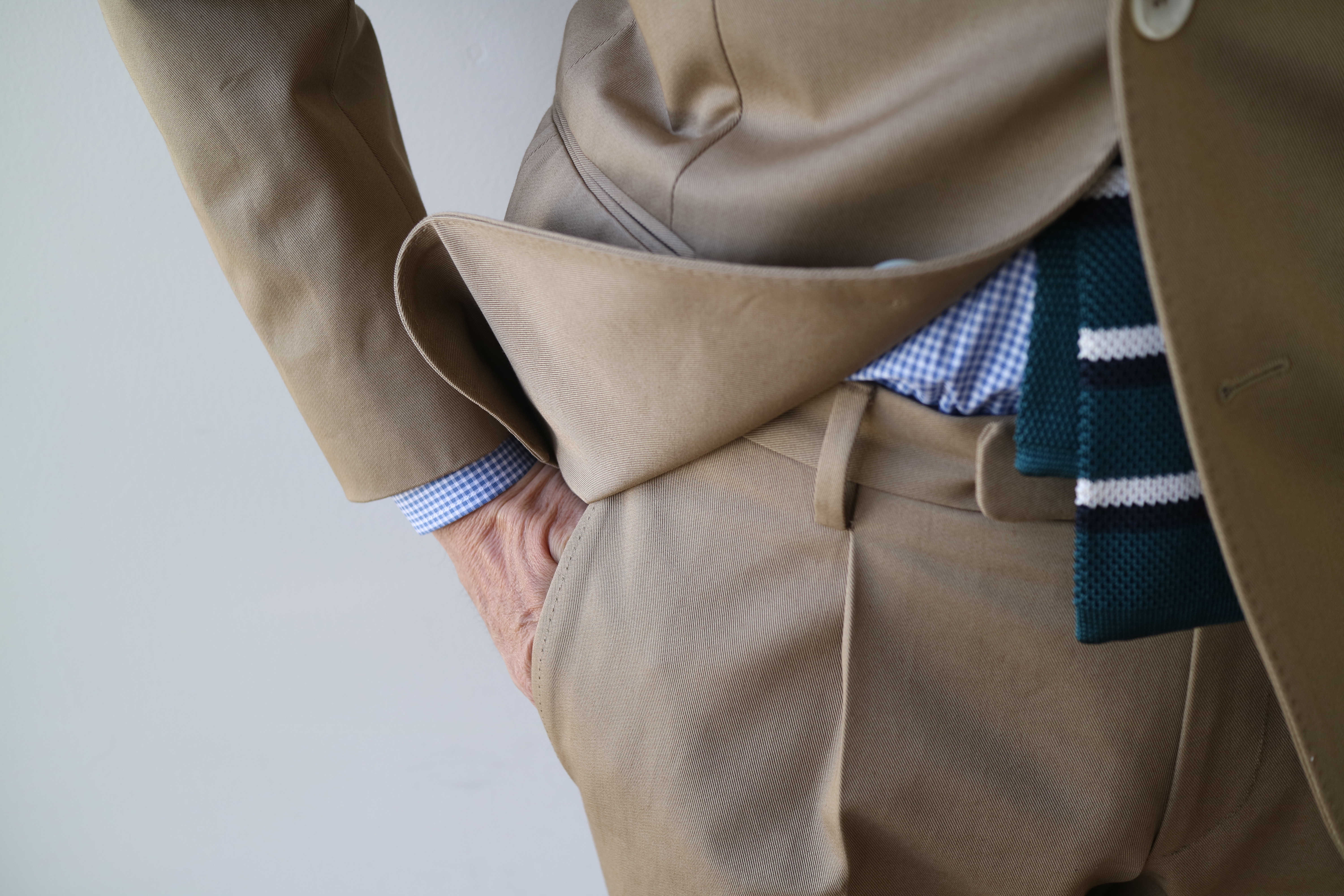 昨年、購入したStile Latino(スティル ラティーノ)のコットンスーツ。ストレッチのきかない、固めのコットンギャバに魅せられて、人生で5着目の購入でした。一番最初に購入したのは、大学1年の春で、ブランドはといえば懐かしい「KENT」のもの。着こなしの基本は、白のオックスフォードのB.Dシャツに黒のニットタイ、足元はローファー...でしたね。