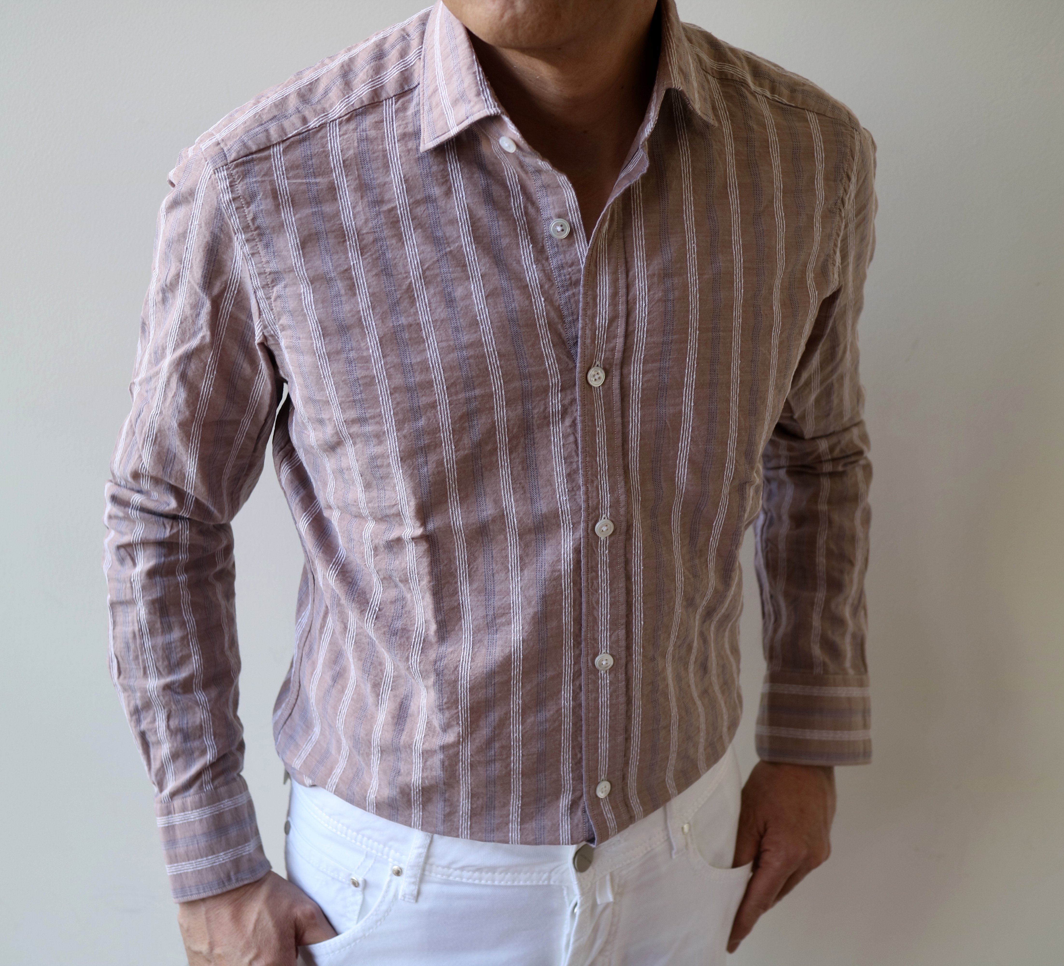 MODEL:「BERLINO」ストライプ柄シアサッカー地シャツ