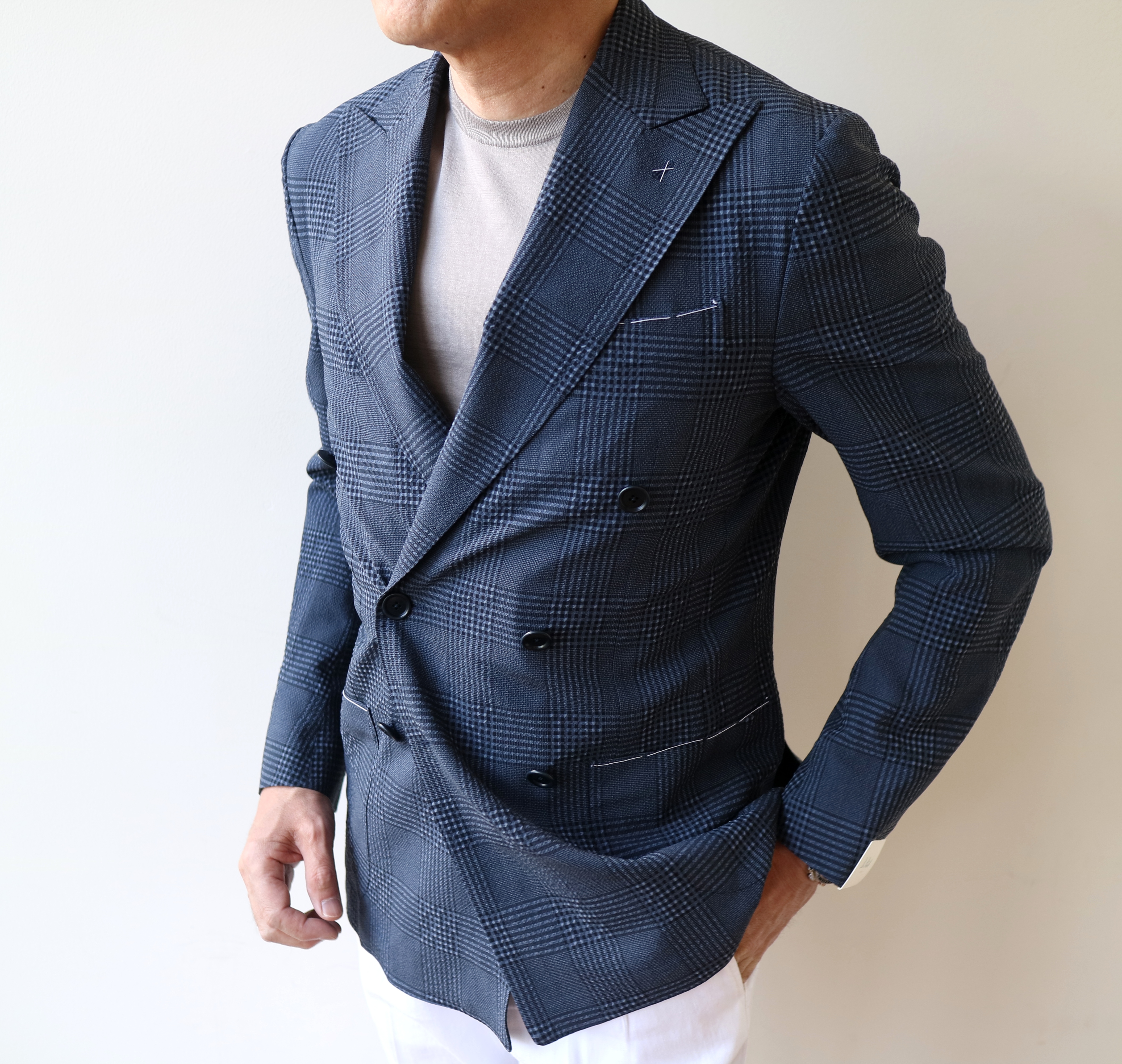 MODEL:「NUVOLA」ウール・シルク グレンチェック柄ダブルジャケット